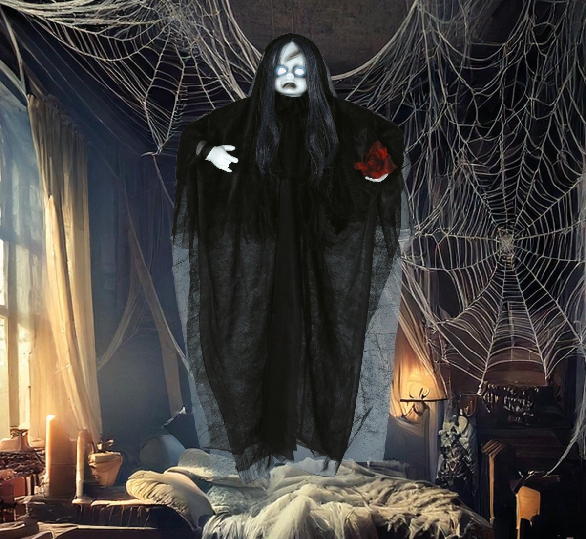 Poupée d'Halloween avec son et lumière 90cm