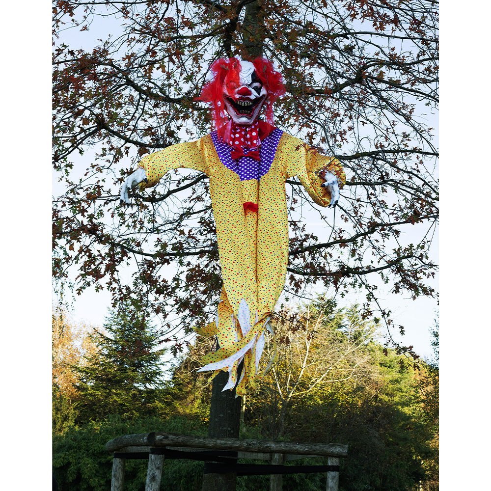 Rends ta fête d'Halloween inoubliable avec cette poupée clown géante de 3,5 mètres. Avec sa tenue aux couleurs vives, son sourire terrifiant et ses cheveux roux sauvages, cette décoration d'horreur attire tous les regards. Accroche-la dans un arbre, près de la porte d'entrée ou dans une maison hantée et fais peur à tout le monde.