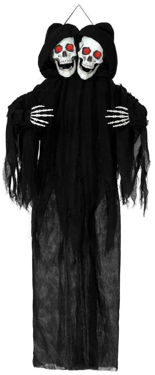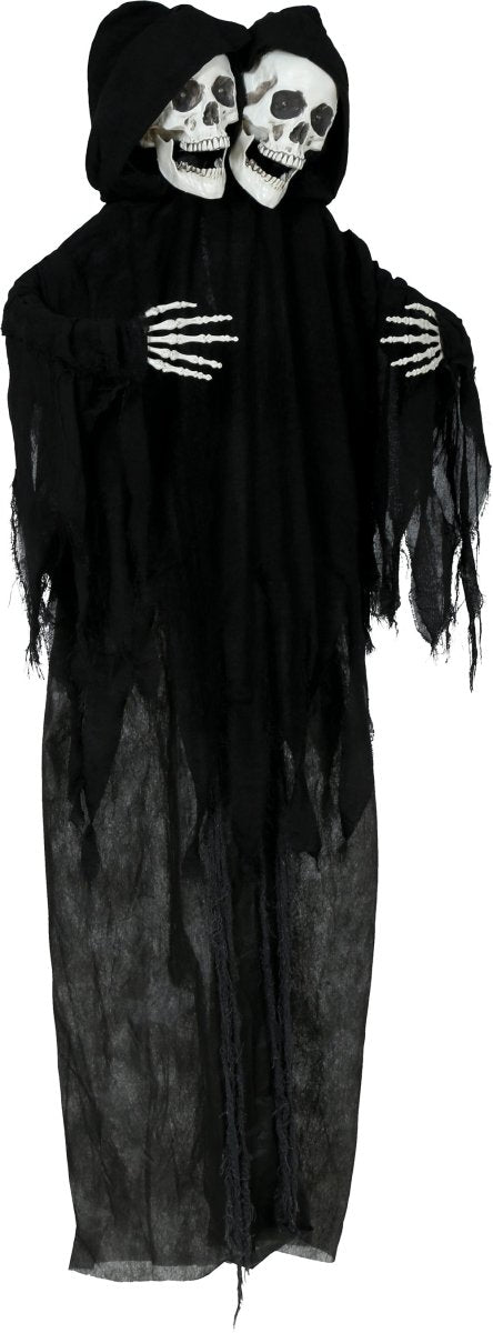 Halloween Poupée Squelette Noir Deux Crânes Avec Lumière Et Son 1.7m