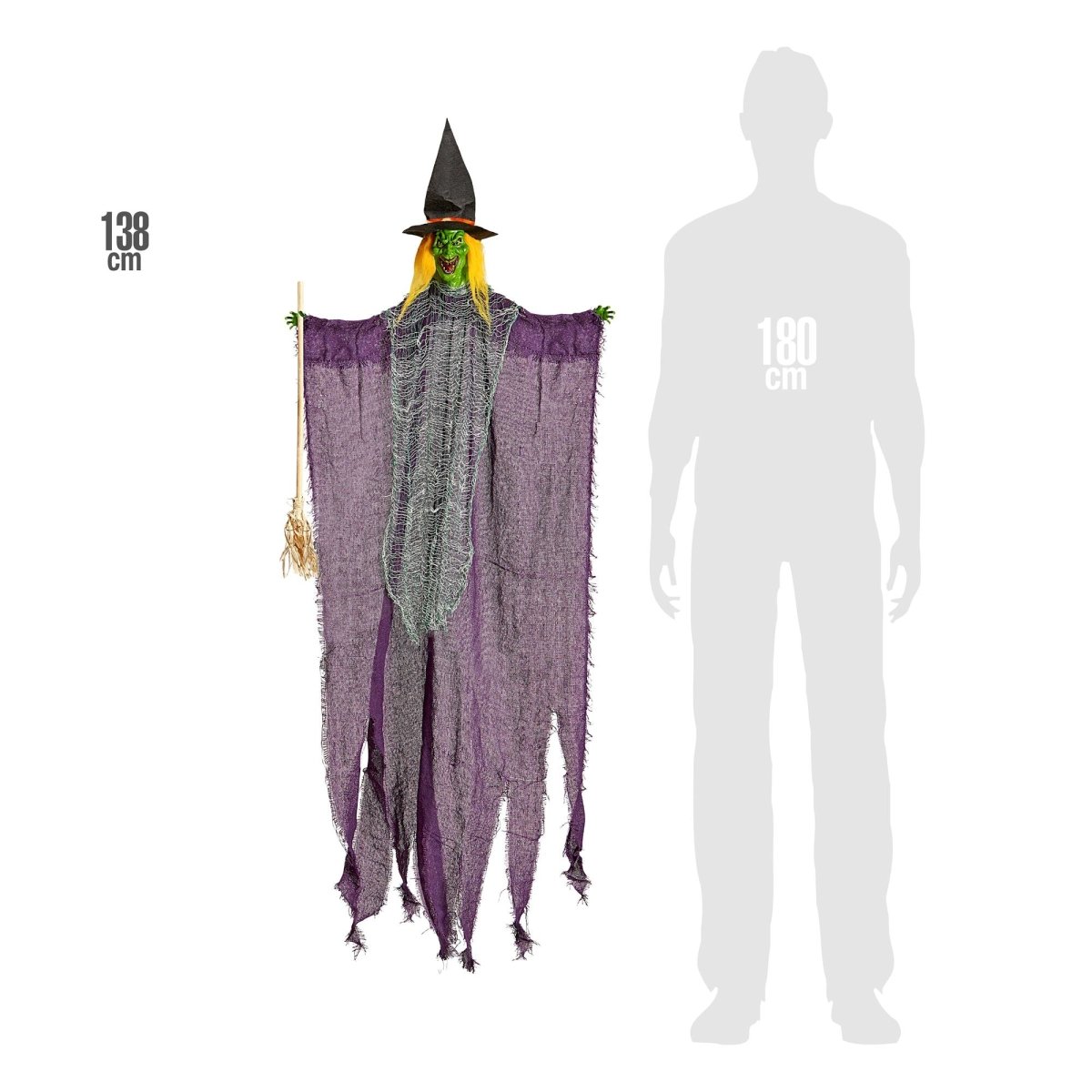 Poupée d'Halloween sorcière avec balai 1.38m