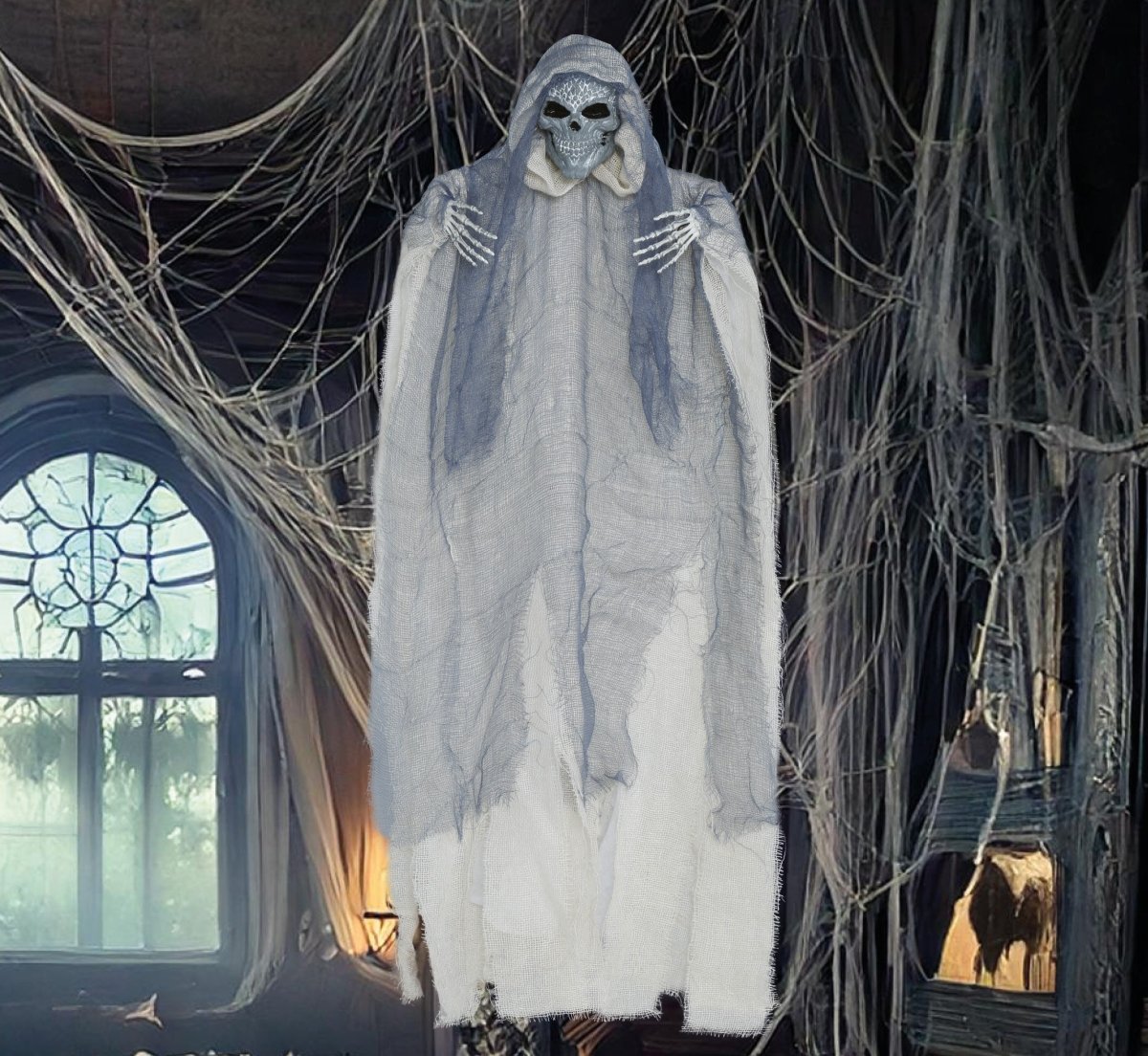 Poupée d'Halloween Squelette gris avec cape