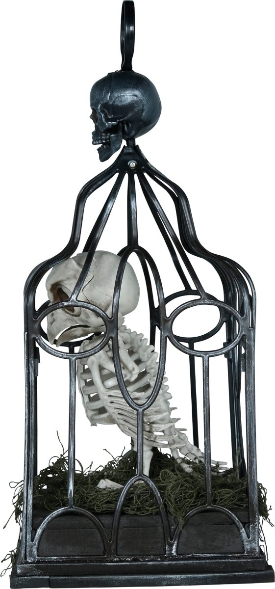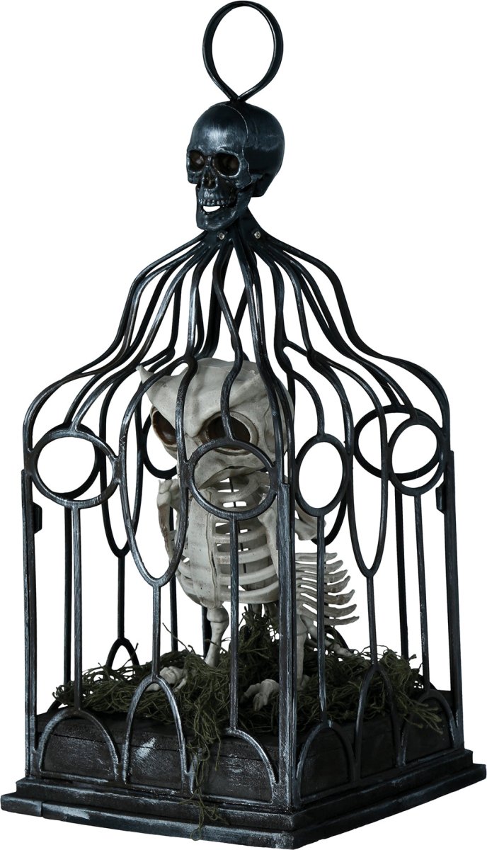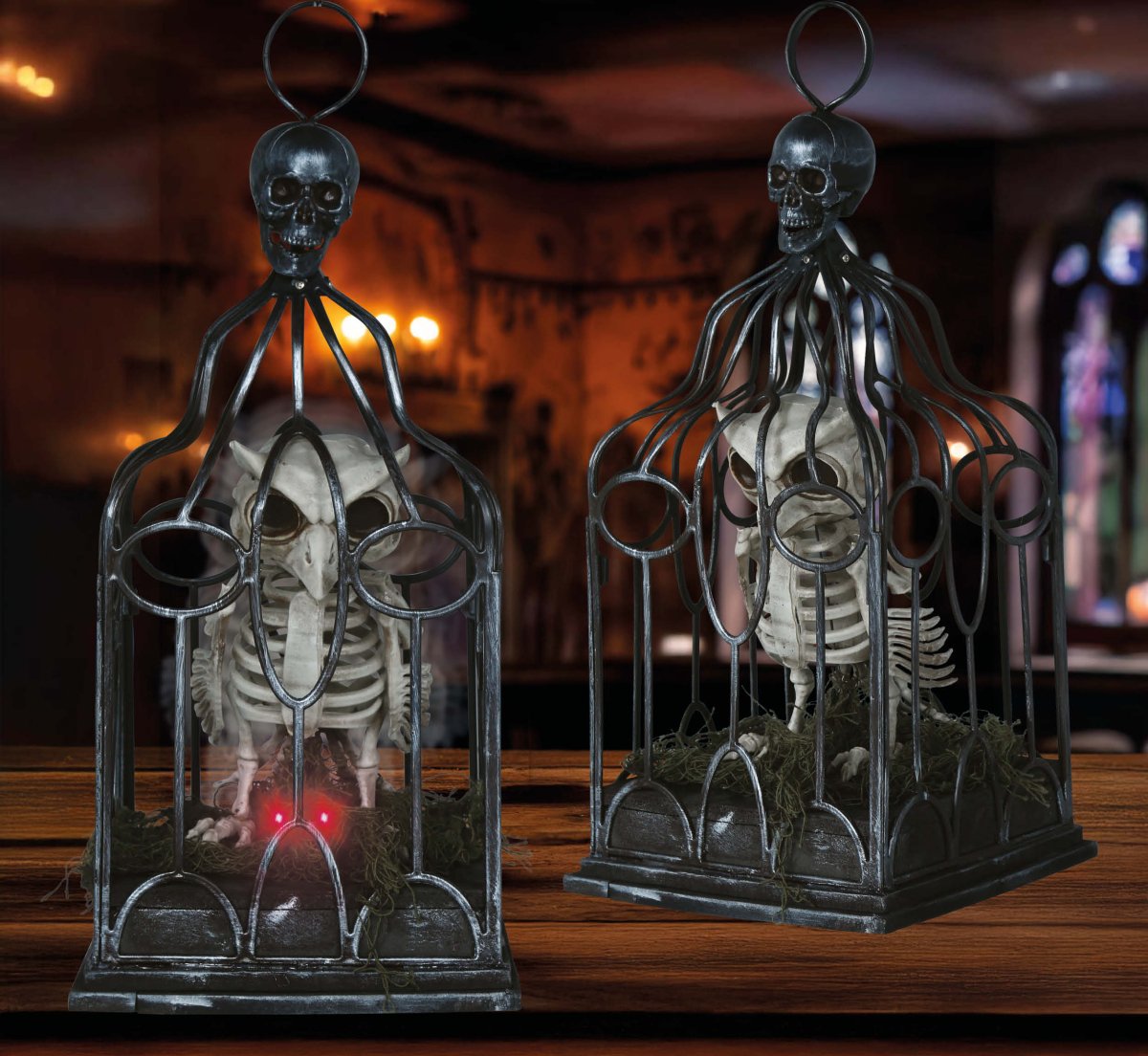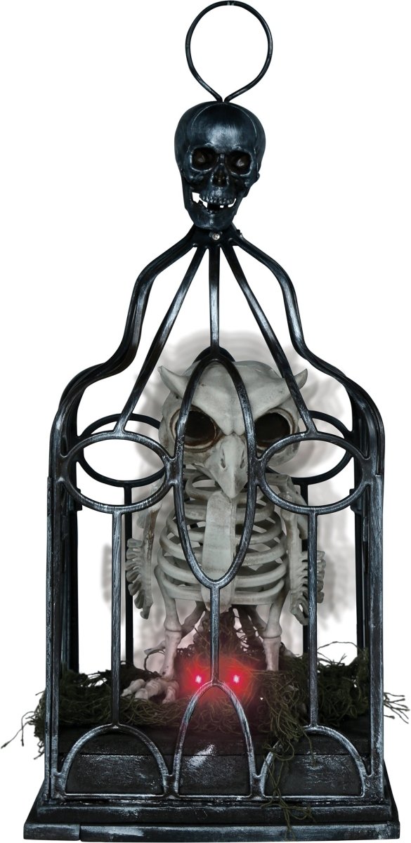 Hibou squelette d'Halloween dans une cage avec lumière, son et mouvement
