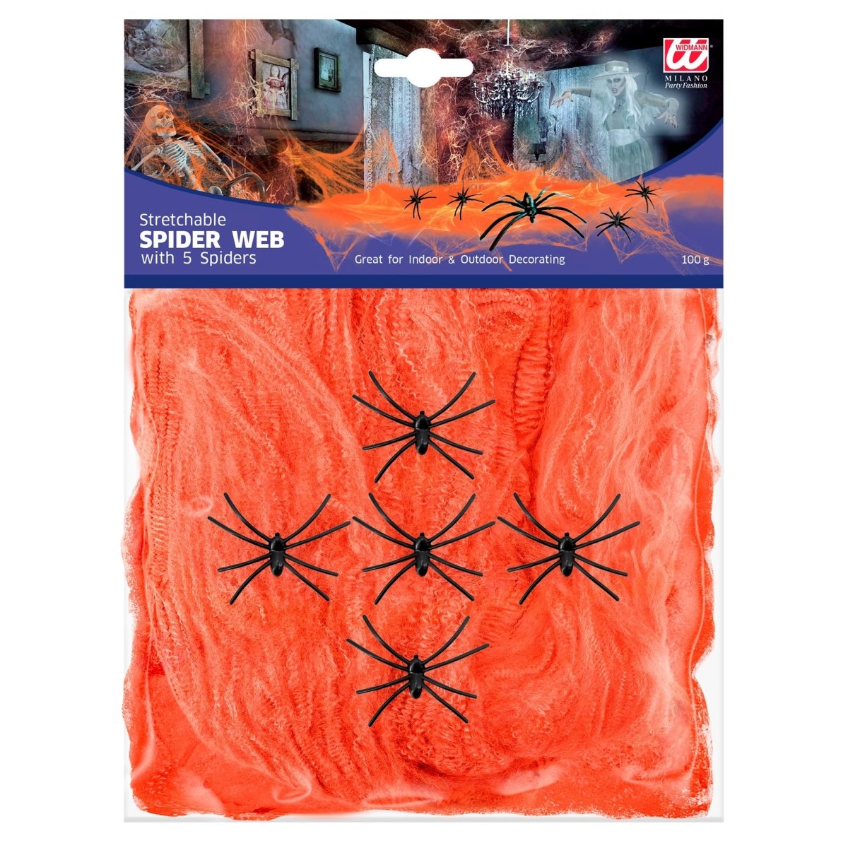 Halloween Cobweb Orange avec des araignées