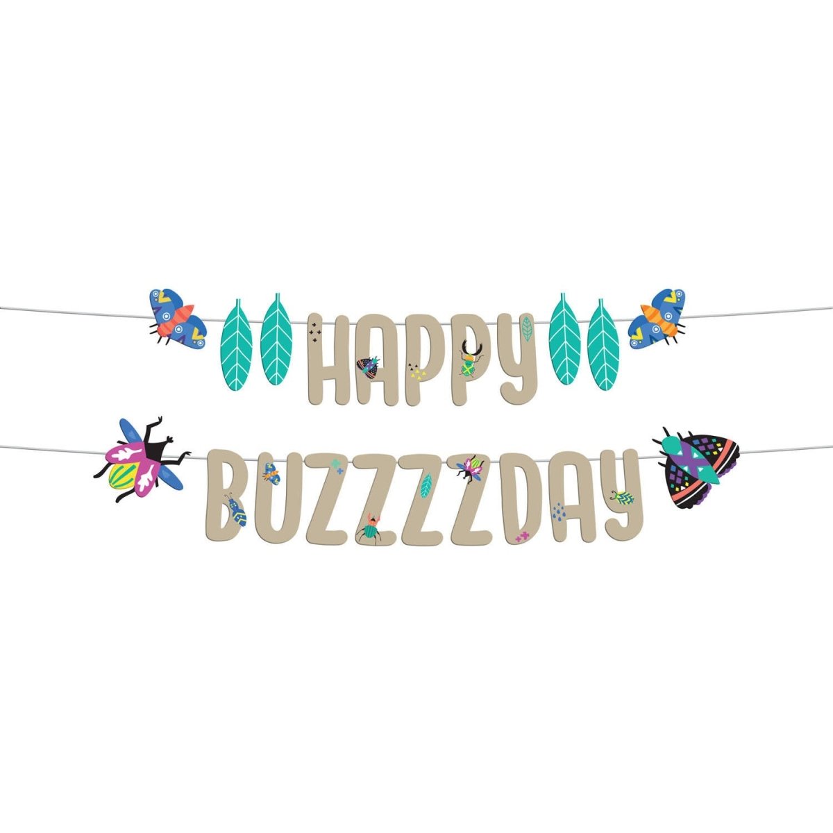 Fais la fête avec les insectes ! Guirlande de lettres - "Happy Buzzzzday" - Buzzing Bugs - 1,5 mètre. Contenu : 1 ensemble de guirlandes de lettres. À utiliser par exemple lors des fêtes/occasions suivantes : Fête d'enfants, Anniversaire. Avec ce jeu de guirlandes de lettres, les insectes font la fête avec toi. La guirlande se compose de deux parties : une guirlande avec le texte "HAPPY" (environ 14 cm de haut) avec 2 feuilles et une bestiole de chaque côté, et une guirlande avec le texte "BUZZZZDAY" (environ 14 cm de haut) avec 2 feuilles et une bestiole de chaque côté. Les deux guirlandes mesurent 1 mètre de long. Les feuilles, les bestioles et les lettres peuvent être glissées d'avant en arrière sur le ruban blanc. Cet ensemble de guirlandes de lettres appartient à la collection Buzzing Bugs de Folat. Cet article est fabriqué en papier FSC.