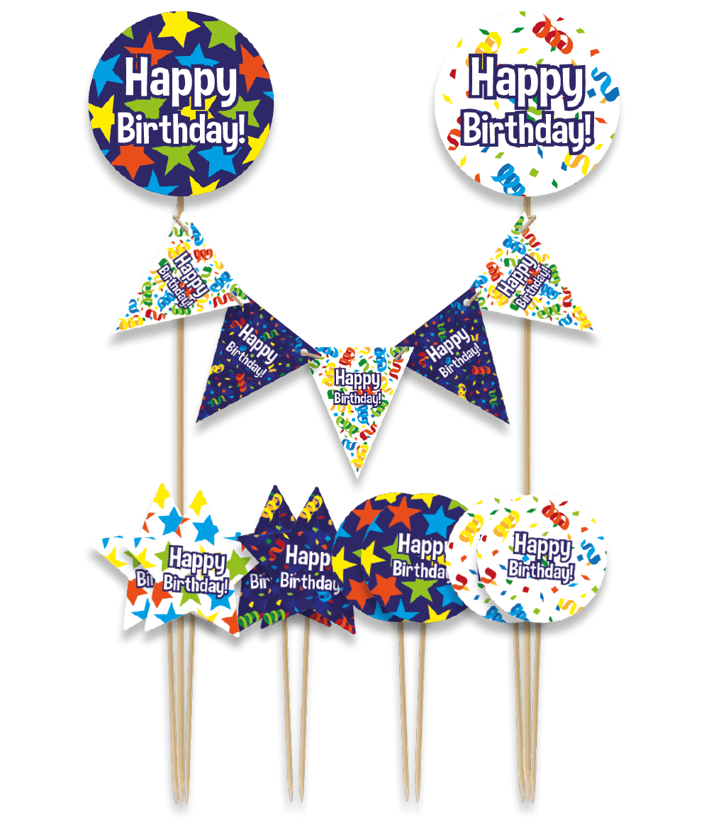 Faites de n'importe quel gâteau un véritable accroche-regard avec ces décorations de gâteau Joyeux anniversaire ! Si quelqu'un fête son anniversaire, alors c'est la décoration parfaite dans un gâteau. Les piquants sont faciles à insérer dans le gâteau ou la tarte pour un effet accrocheur.