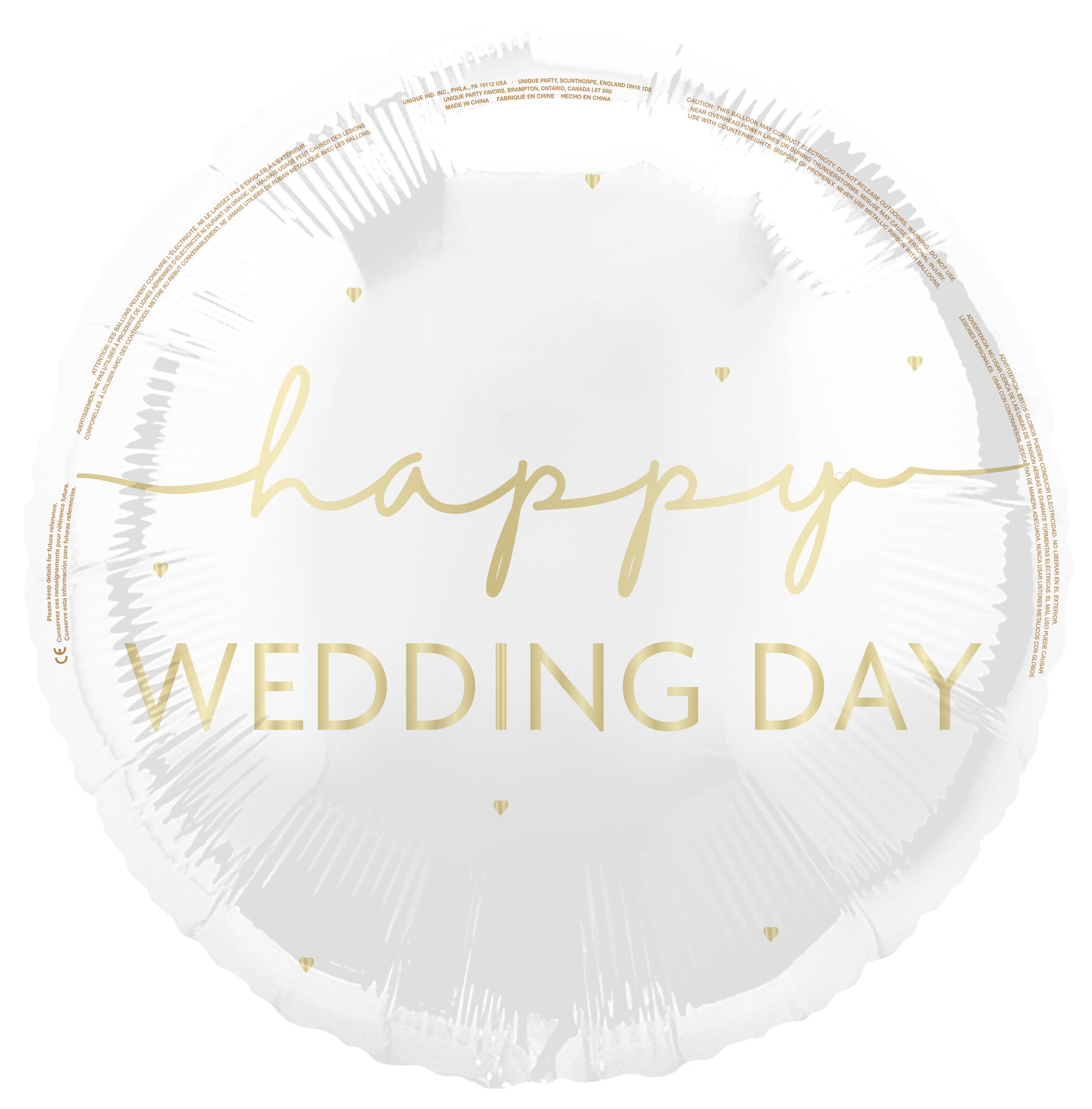 Happy Wedding Day Ballon à l'hélium Or blanc 45cm