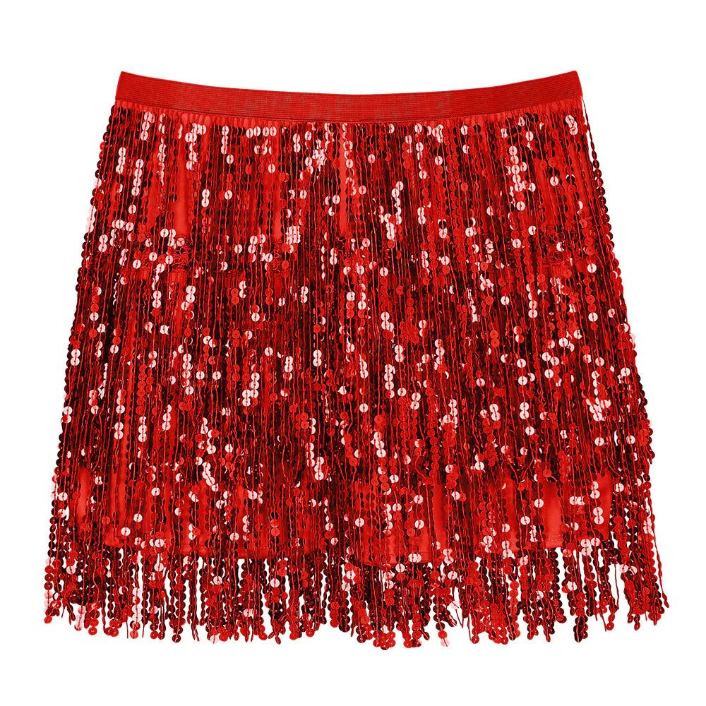 Laisse-toi briller avec cette mini-jupe rouge étincelante ! Décorée de paillettes scintillantes et de froufrous ludiques, la jupe bouge à chaque pas pour un effet irrésistible. Parfaite pour les fêtes, les carnavals ou les soirées déguisées.