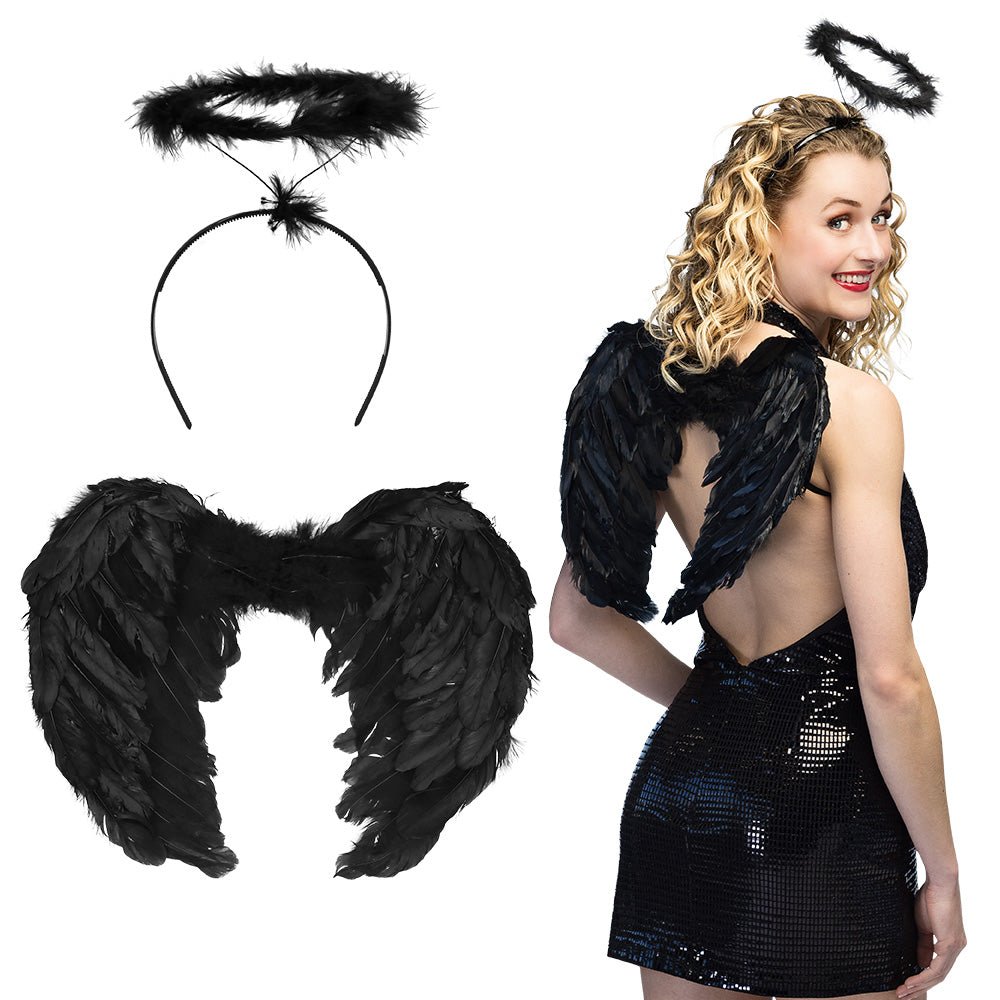 Complète ton look d'ange noir avec cet ensemble noir. Parfait pour Halloween, le carnaval, les soirées déguisées ou les événements de cosplay. L'ensemble comprend tous les accessoires dont tu as besoin pour composer une tenue accrocheuse et élégante.