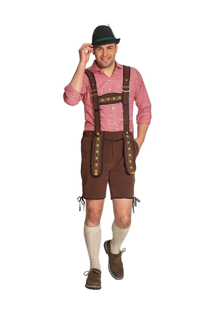 Lederhose Johann avec bretelles réglables Marron foncé Court