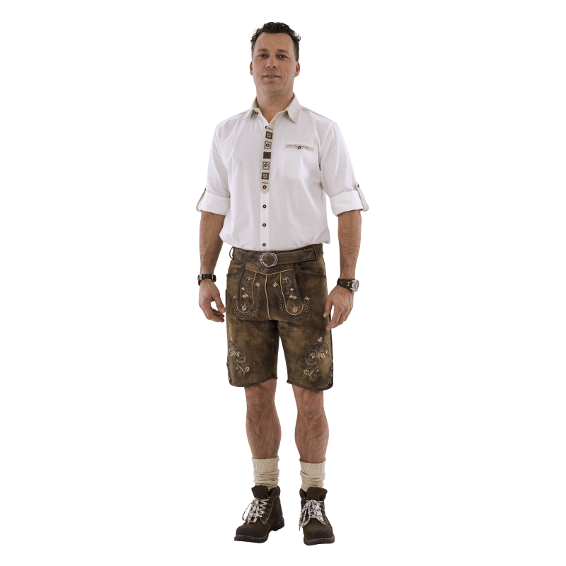 Short Leatherhosen avec broderie exclusive et ceinture - Marron