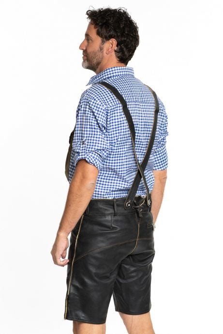 Lederhose Short en cuir noir et ceinture