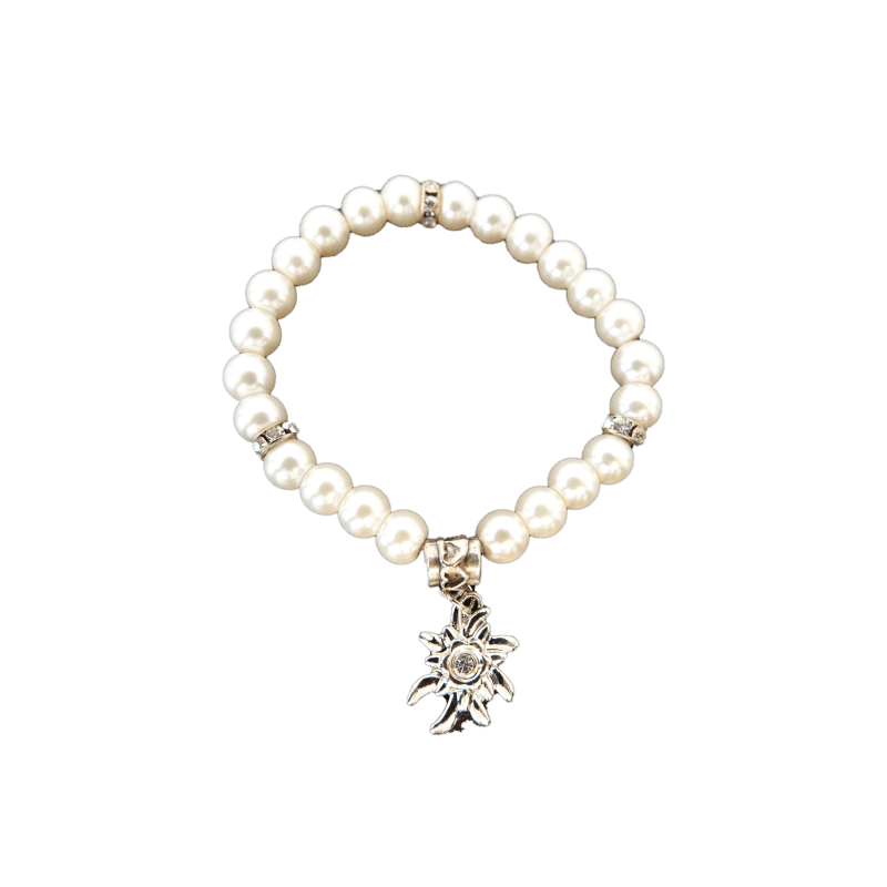 L'élégant bracelet comporte des perles blanches et un délicat pendentif en pierre précieuse. Cet accessoire ajoute une touche subtile et élégante à n'importe quelle tenue.