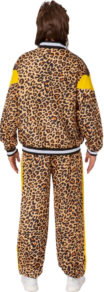 Ce jogging léo pour homme se compose d'une veste et d'un pantalon et constitue un ensemble de déguisement complet pour les occasions déguisées ou à thème.