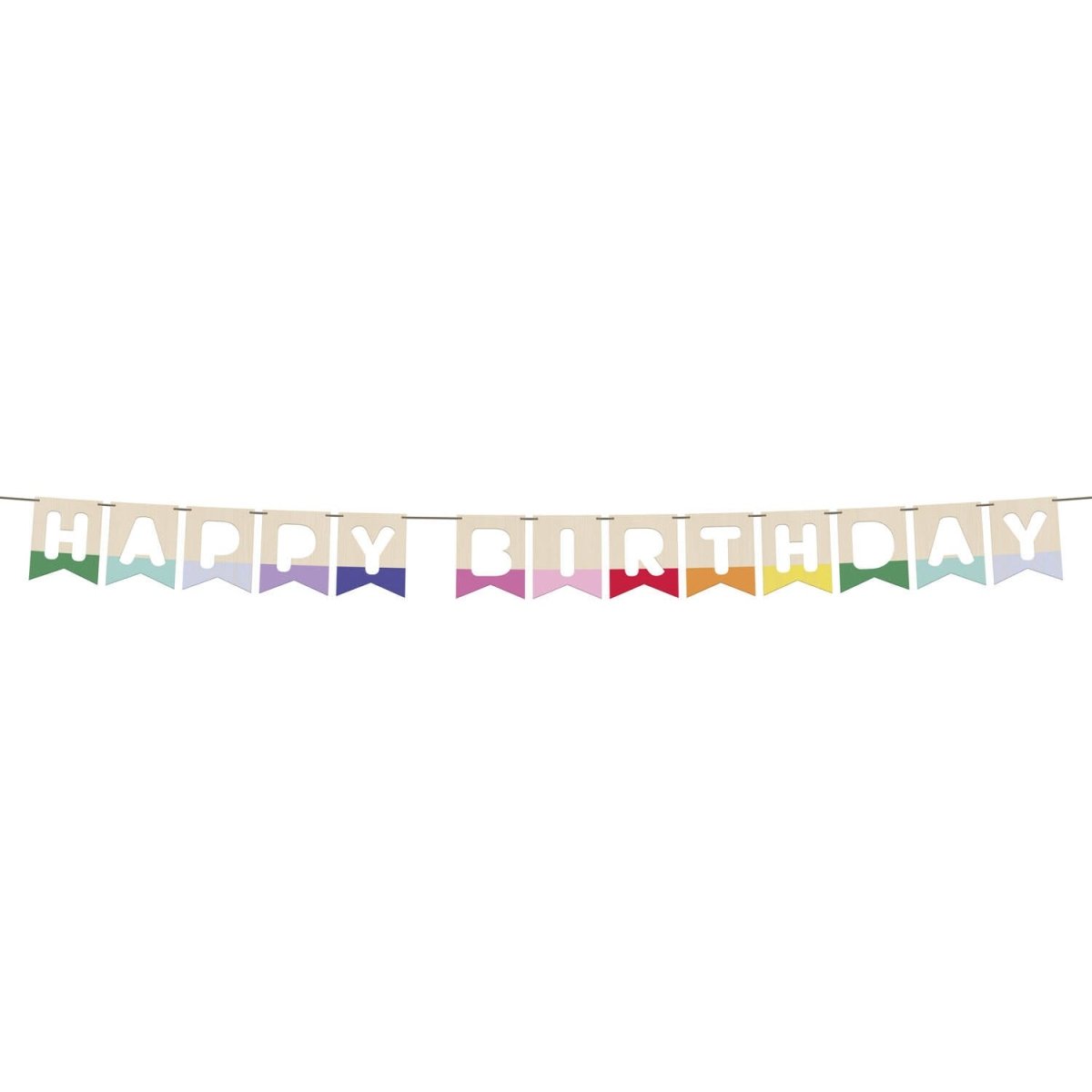 Du bois à chaque anniversaire ! Ligne de drapeau - Bois - "HAPPY BIRTHDAY" - Stripetastic - 4 m. Contenu : 1 ligne de drapeau. A utiliser par exemple lors des fêtes/occasions suivantes : Anniversaire, Fête des enfants. La ligne de drapeau colorée, mais en bois. Les lettres "HAPPY BIRTHDAY" sont découpées et la partie inférieure des drapeaux a une couleur différente à chaque fois. Les drapeaux mesurent 11 x 14 x 0,3 et peuvent être déplacés sur le ruban de couleur beige. Comme cette ligne de drapeaux est en bois, elle peut être utilisée pour plusieurs anniversaires. Cette ligne de drapeau appartient à la collection Stripetastic de Folat. Cet article est fabriqué en bois.