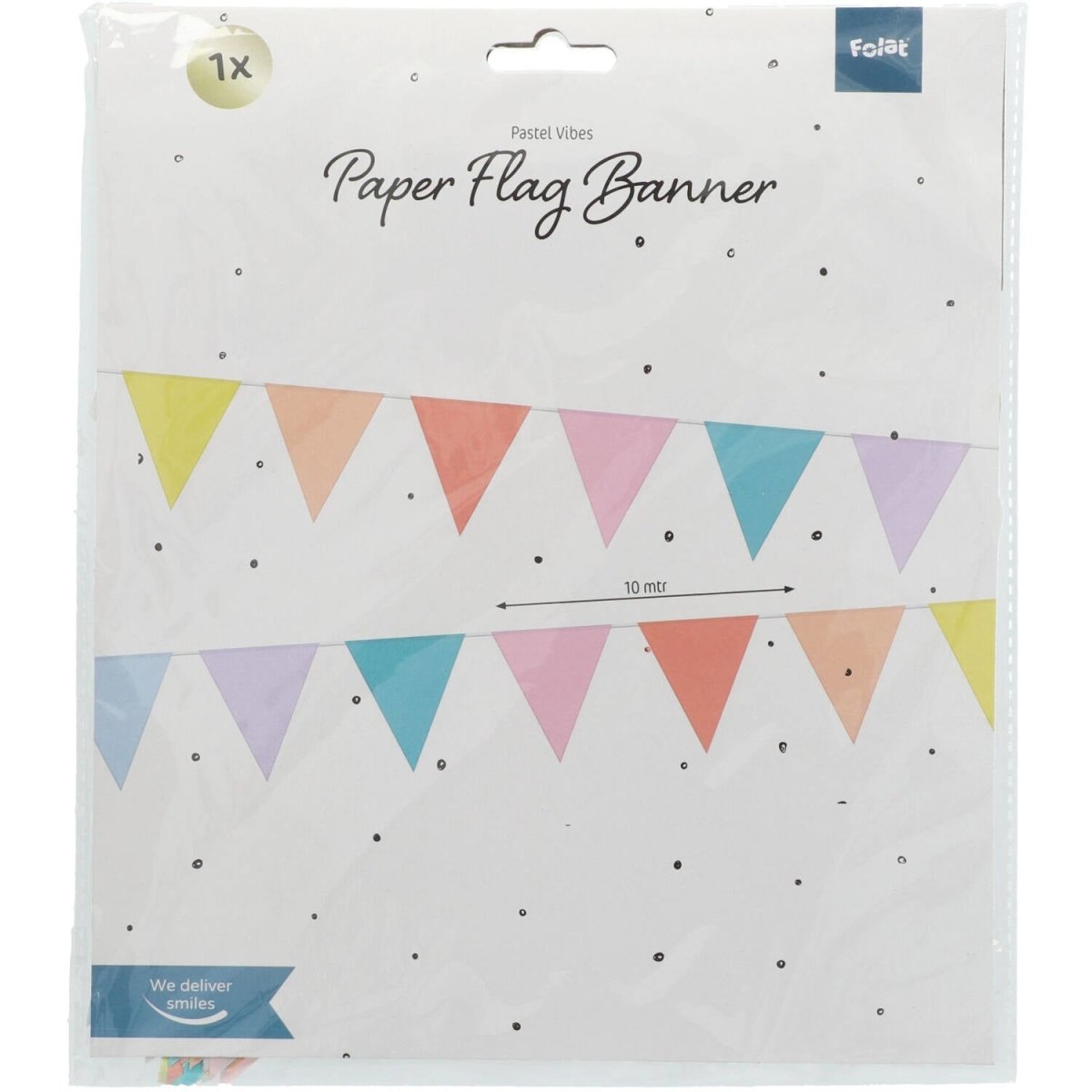Ligne de drapeau Pastel Multicolore - 10 mètres. Contenu : 1 ligne de drapeau. Couleur : multicolore. A utiliser par exemple lors des fêtes/occasions suivantes : Anniversaire, Fête des enfants et Anniversaire. Cette guirlande a une longueur de 10 mètres. L'article est fabriqué en papier.