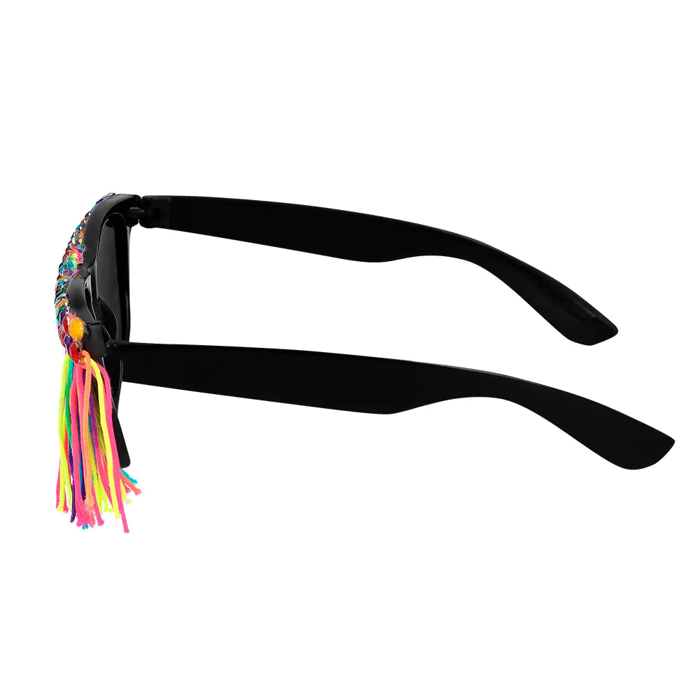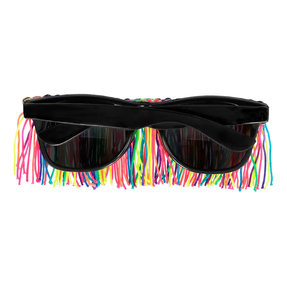 Ajoute une touche ludique et colorée à ton look de fête avec ces lunettes de fête fringantes. Le cadre comporte des franges colorées et des pierres brillantes pour un look extravagant tout à fait approprié lors d'un festival, d'une soirée déguisée ou d'un carnaval. Bref, l'accessoire parfait pour une tenue de fête qui attire les regards !