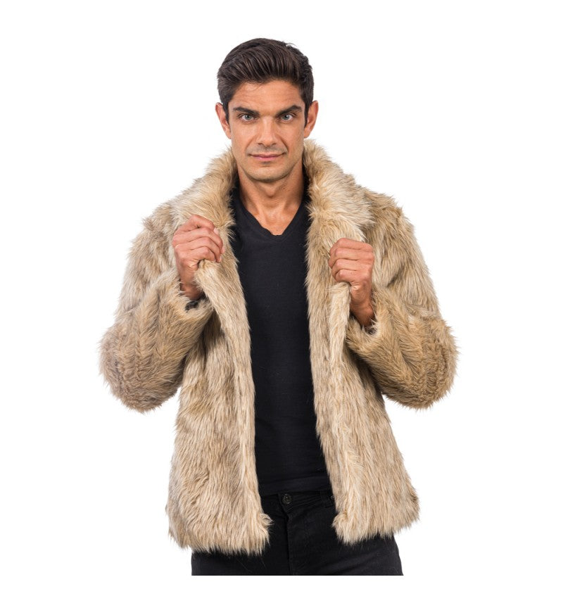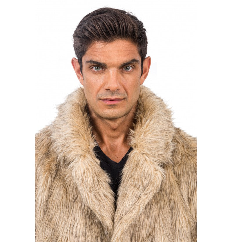 Un manteau de fausse fourrure élégant et chaud dans des tons naturels qui offre un confort et un aspect luxueux, complètement sans vraie fourrure