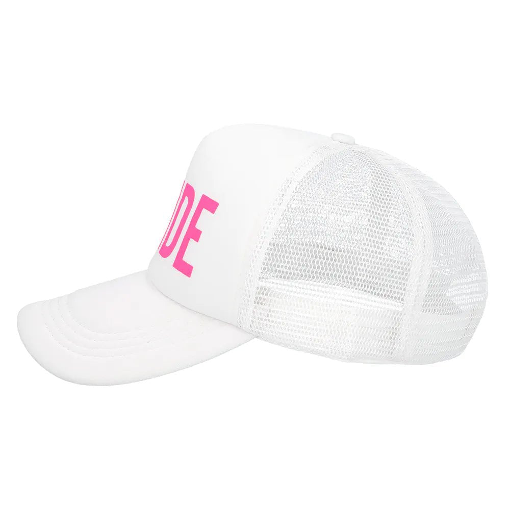 Cette jolie casquette blanche avec l'impression ""Bride"" en grandes lettres roses est parfaite pour les mariées qui veulent souligner leur statut particulier pendant leur enterrement de vie de jeune fille. Avec son design contemporain, c'est un accessoire ludique et amusant qui permet de savoir instantanément qui va bientôt se marier !