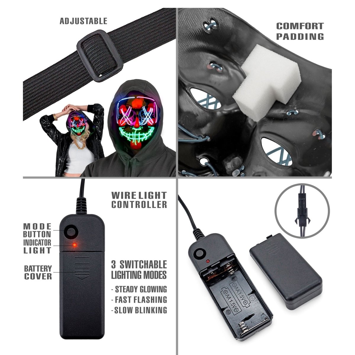 Contient l'emballage: 1 masque effrayant noir avec néon coloré