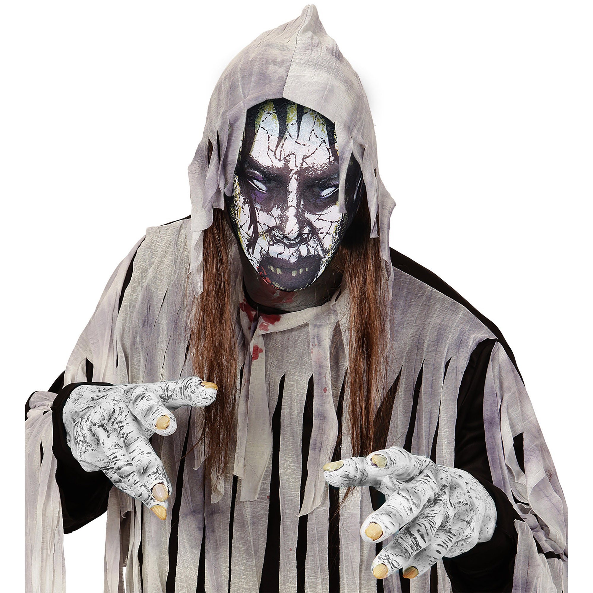 Complète ton costume d'Halloween effrayant avec ce masque de zombie en tissu gris. Parfait pour les fêtes à thème, les fêtes costumées ou les looks effrayants d'Halloween.