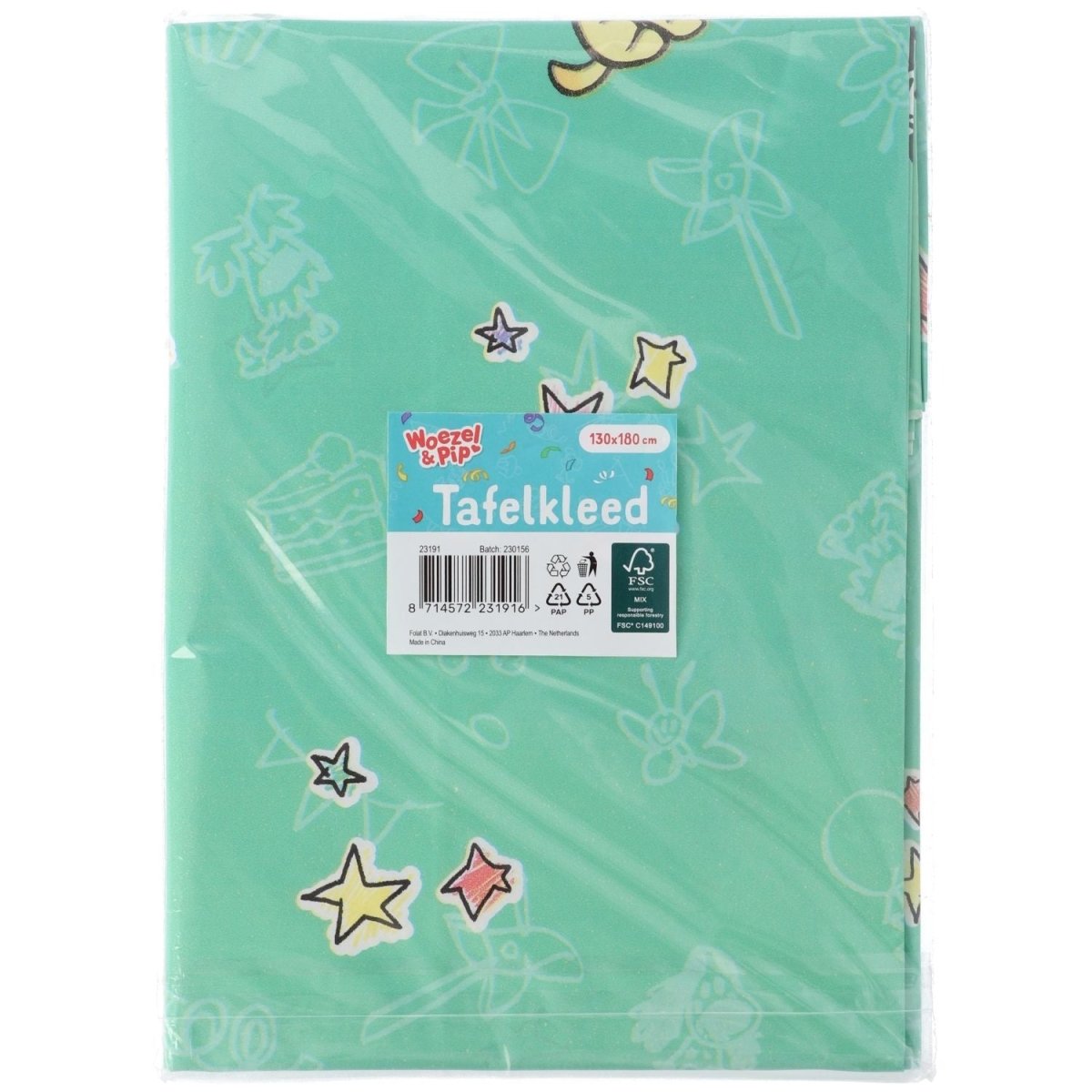 Pour une vraie fête Woezel et Pip. Nappe, Woezel et Pip, 1,3 x 1,8 mètres. Contenu : 1 nappe. À utiliser par exemple lors des fêtes/occasions suivantes : Anniversaire, Fête des enfants. Avec cette nappe, la fête deviendra vite une vraie fête de Woezel et Pip. La nappe est imprimée en all-over sur une face. Cet article est fabriqué en papier FSC