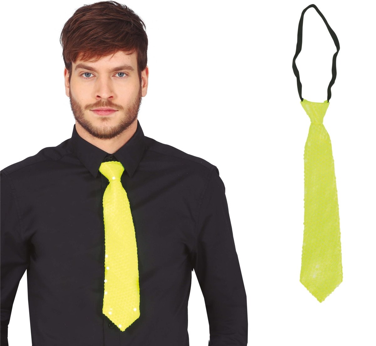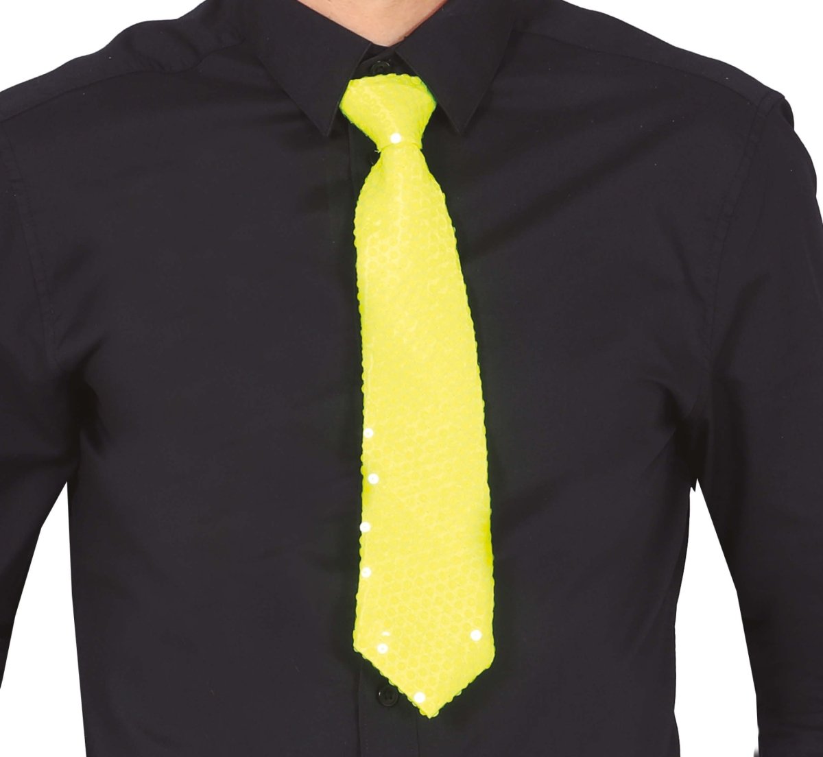 Cravate jaune fluo pailletée 37cm
