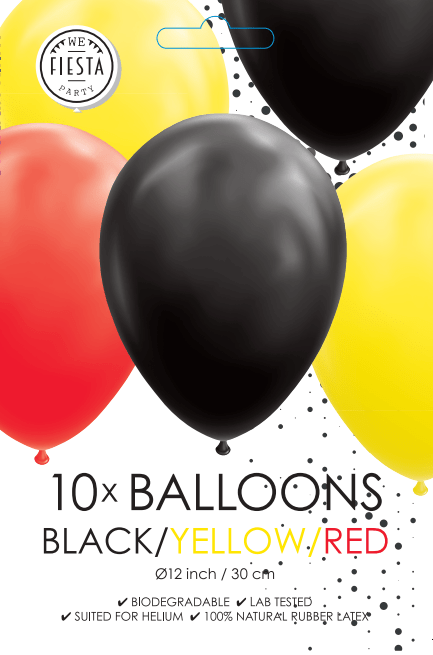 Ballons noirs jaunes rouges 30cm 10pcs