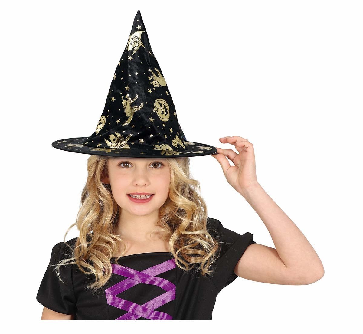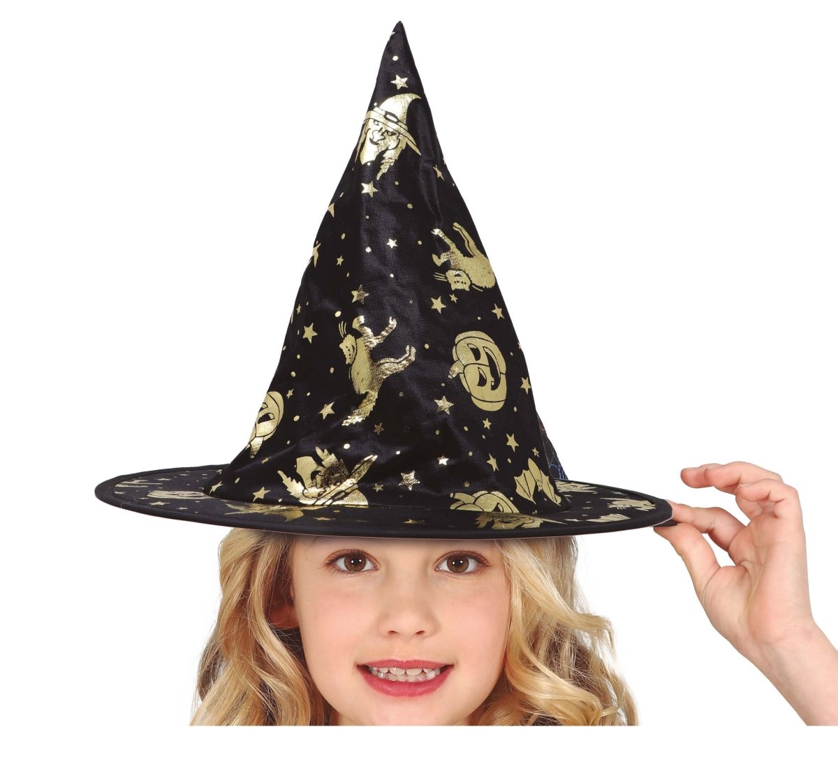 Chapeau de sorcière noir et doré enfant