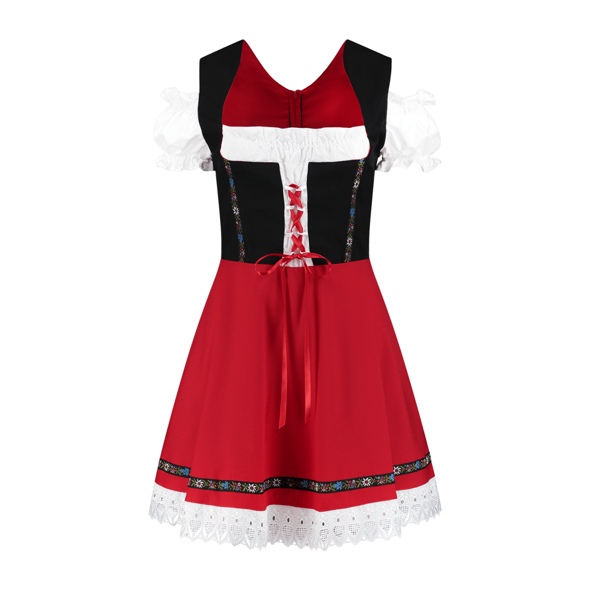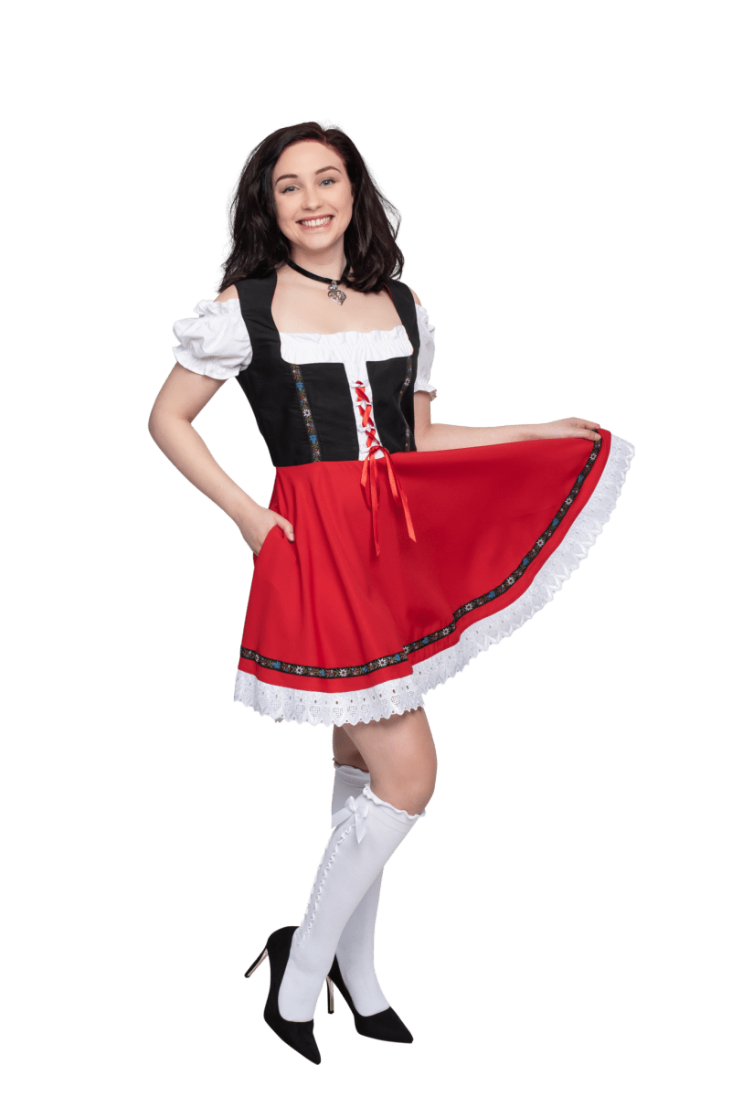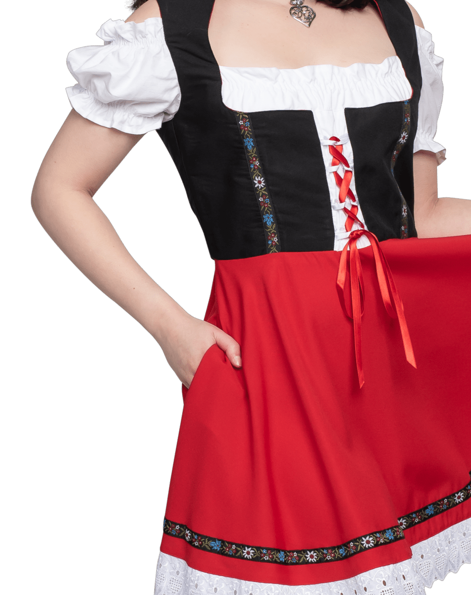 Robe Dirndl Oktoberfest Noir Rouge Dames