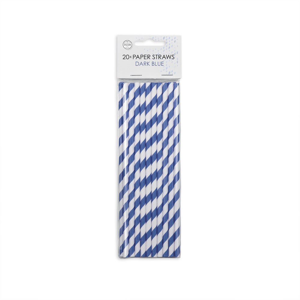 Pailles rayées bleues 19cm 20pcs