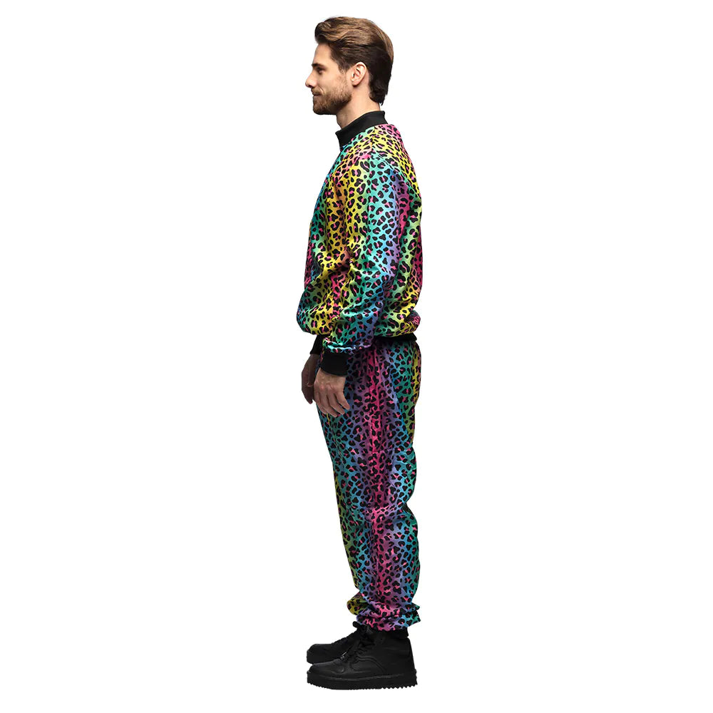 Retourne à l'époque des couleurs flashy et des imprimés sauvages avec ce survêtement coloré Rainbow Leopard dude. Les couleurs néon frappantes, l'imprimé léopard ludique et les poches pratiques font de ce costume coquillage old school amusant un must pour une tenue de gabber. Le survêtement coquin pour le carnaval ou une fête coquine se compose d'une veste et d'un pantalon assortis.