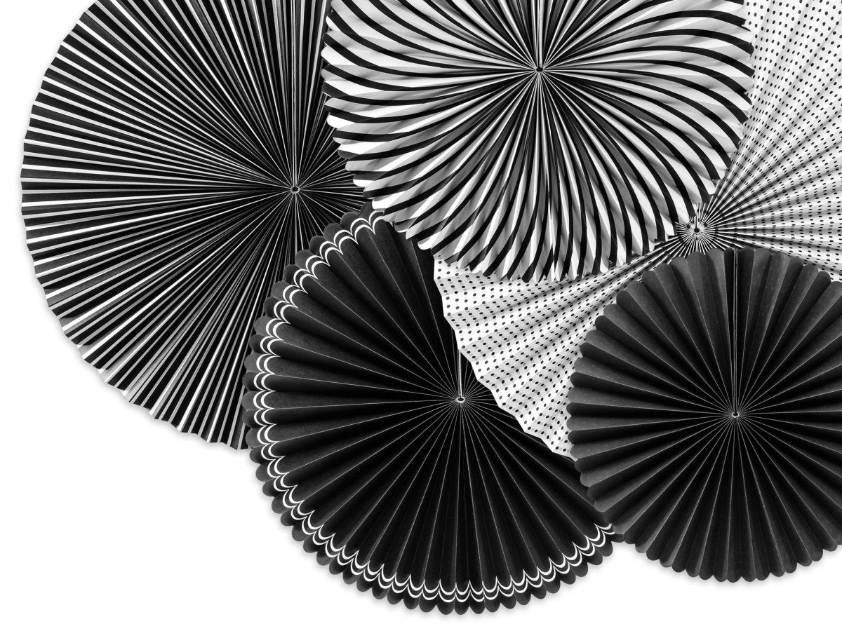Eventails en papier Noirs Blancs Set 25-40cm 5 pièces