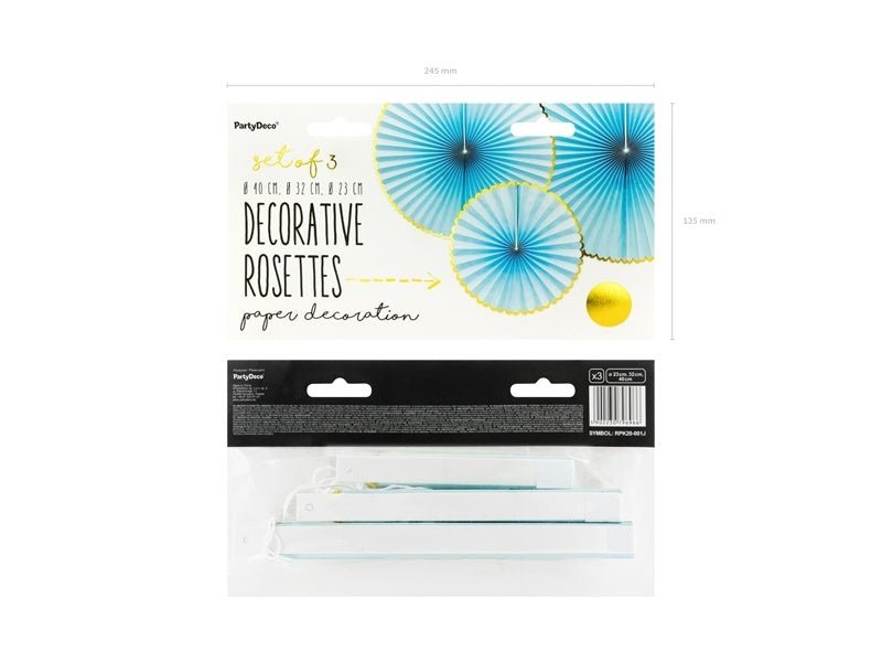 Eventails en papier bleu clair or 23-40cm 3 pièces