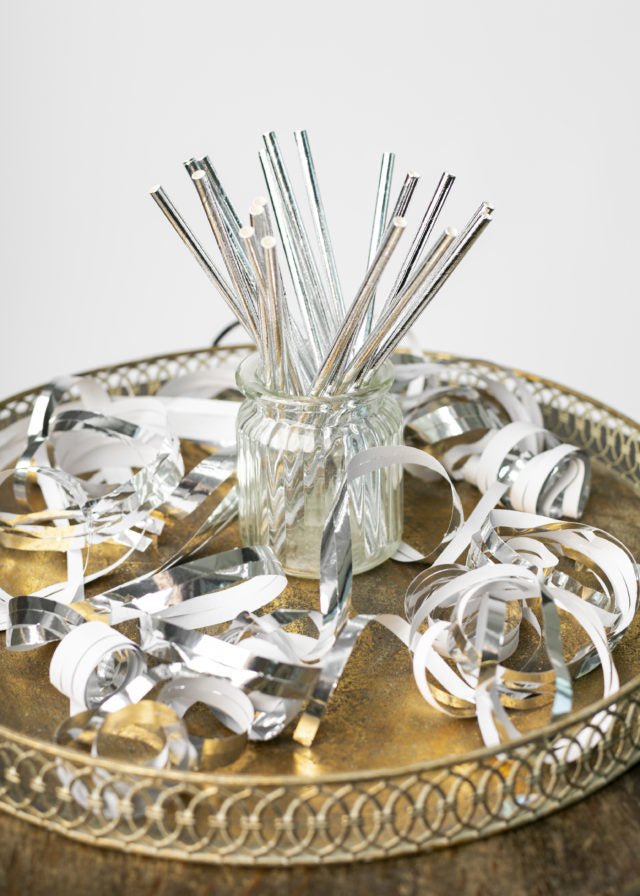Pailles en papier argenté métallisé 19.7cm 20pcs