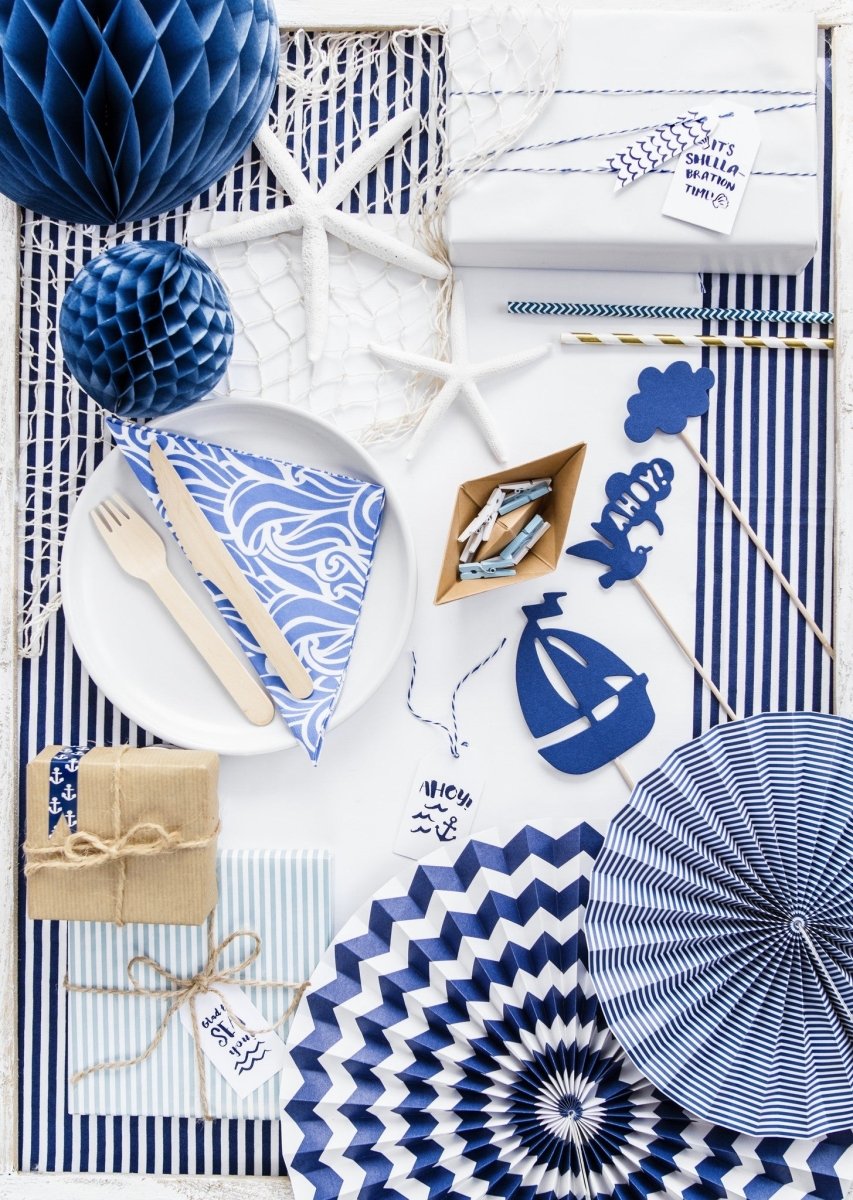 Eventails en papier bleu foncé Set 23-40cm 3 pièces