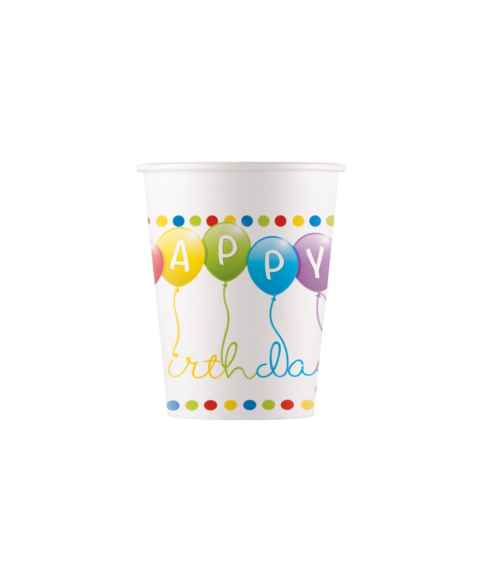 Tasse Happy Birthday en papier 200ml 8 pièces