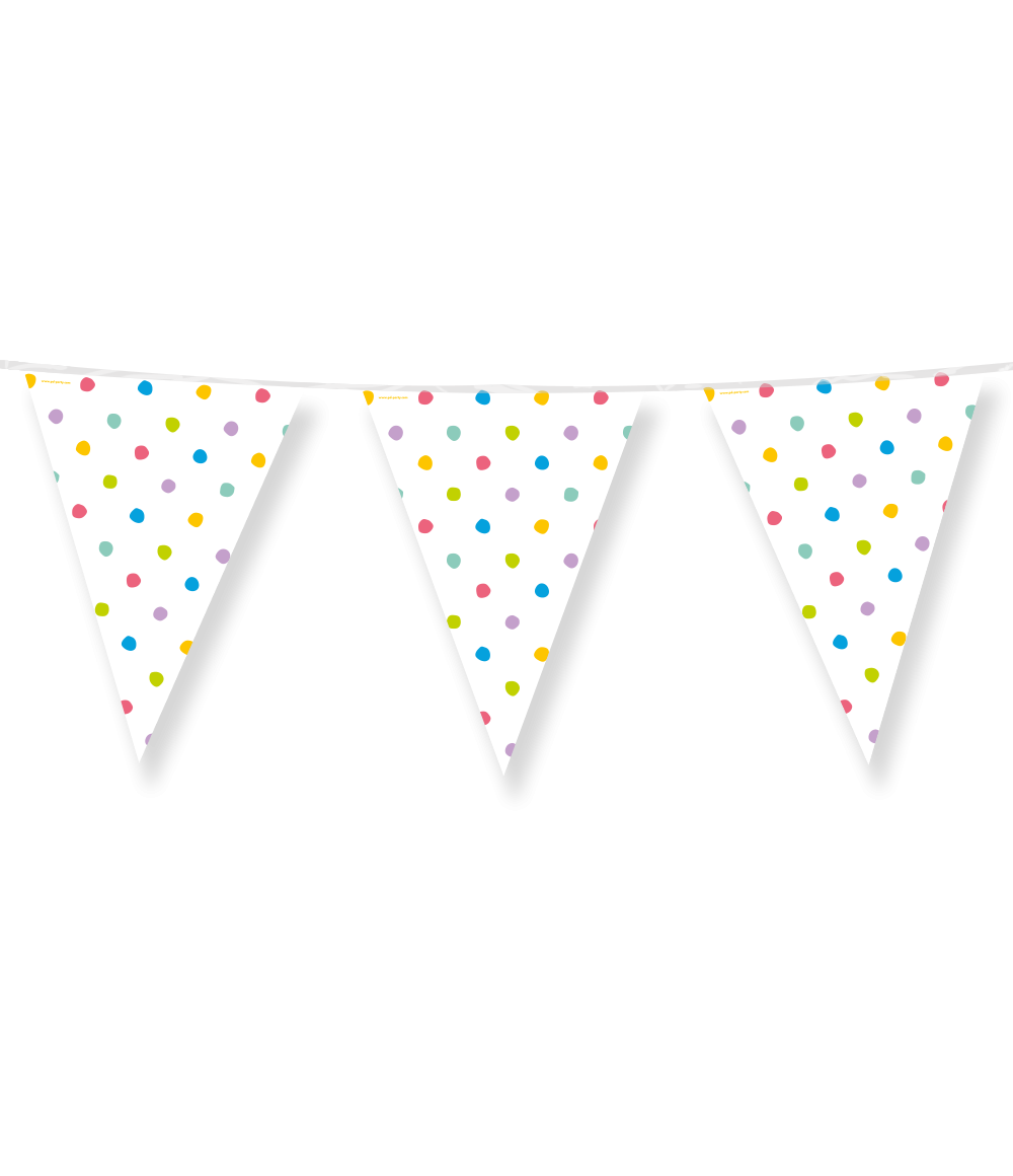 Donne à n'importe quelle fête un coup de pouce coloré instantané avec ces Drapeaux de fête - Party Dots! L'imprimé joyeux à pois fait de cette guirlande de drapeaux un véritable accroche-regard et est parfait pour les anniversaires, les fêtes d'enfants, les fêtes d'été ou toute autre occasion qui aurait besoin d'un peu plus de couleur.