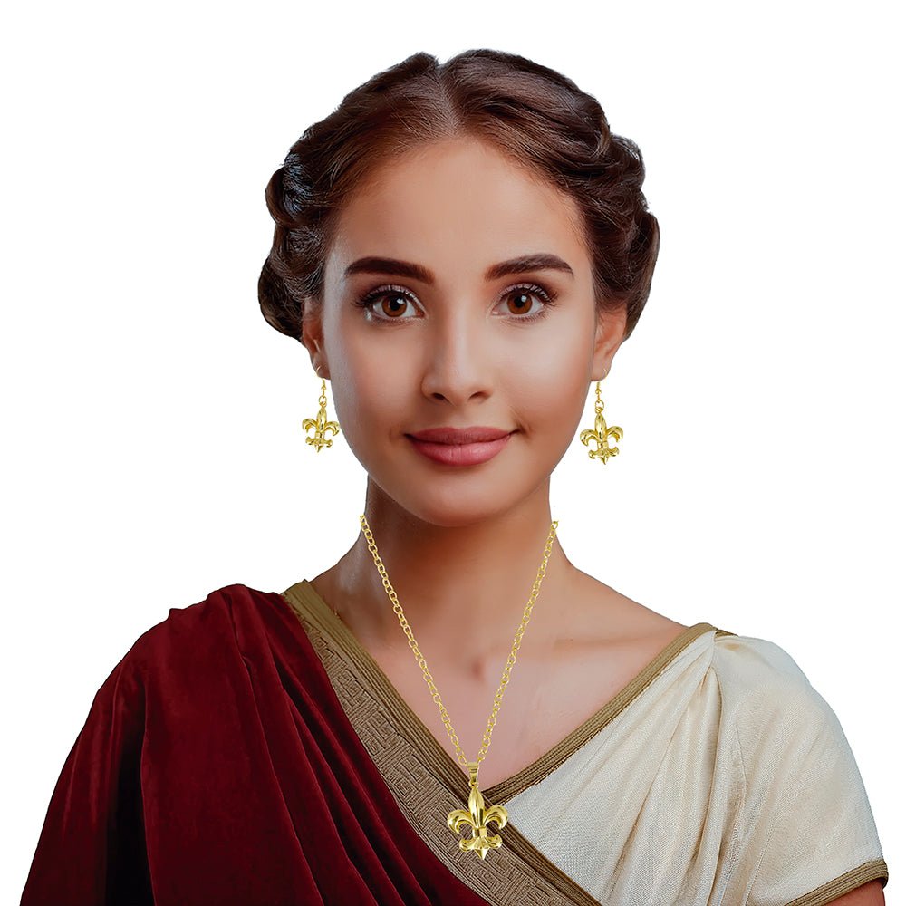 Cette élégante parure se compose d'un collier élégant et de boucles d'oreilles assorties. L'ensemble présente un design intemporel dans une belle couleur dorée et est parfait pour ajouter une touche luxueuse à n'importe quelle tenue.
