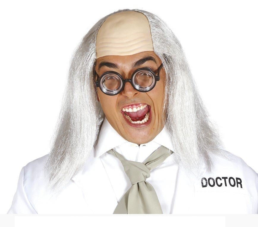 Perruque d'Halloween demi-chauve grise