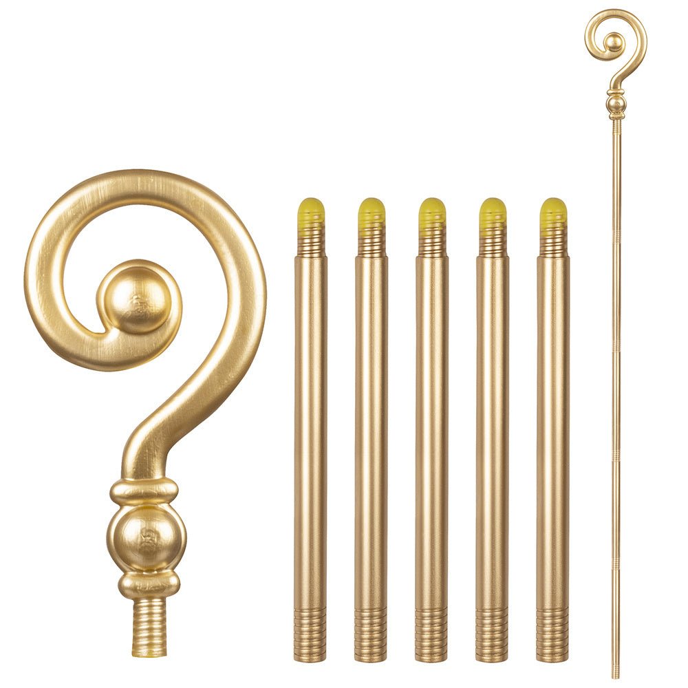 Complète un costume de Sinterklaas avec ce magnifique bâton de Sinterklaas en 6 pièces. Le bâton est en plastique et facile à assembler en tordant les 6 pièces ensemble. Une fois assemblé, le bâton a une longueur de 185 cm. Idéal comme complément pour tous ceux qui vont jouer Sinterklaas pendant l'entrée, la veille de Noël ou d'autres célébrations de Sinterklaas.