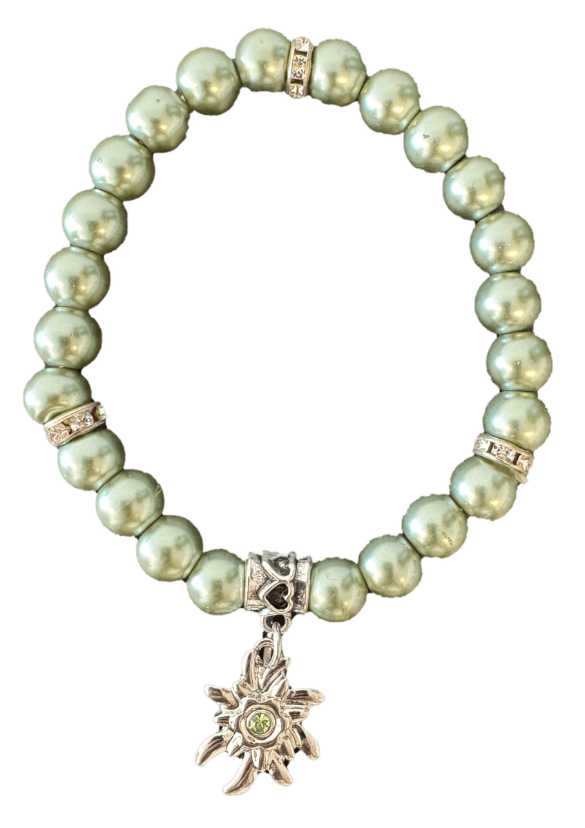 Ajoute une touche naturelle et élégante à n'importe quelle tenue avec ce bracelet vert avec perles et edelweiss. Grâce à son design élégant, ce bracelet peut être porté tous les jours ou être offert comme cadeau spécial.