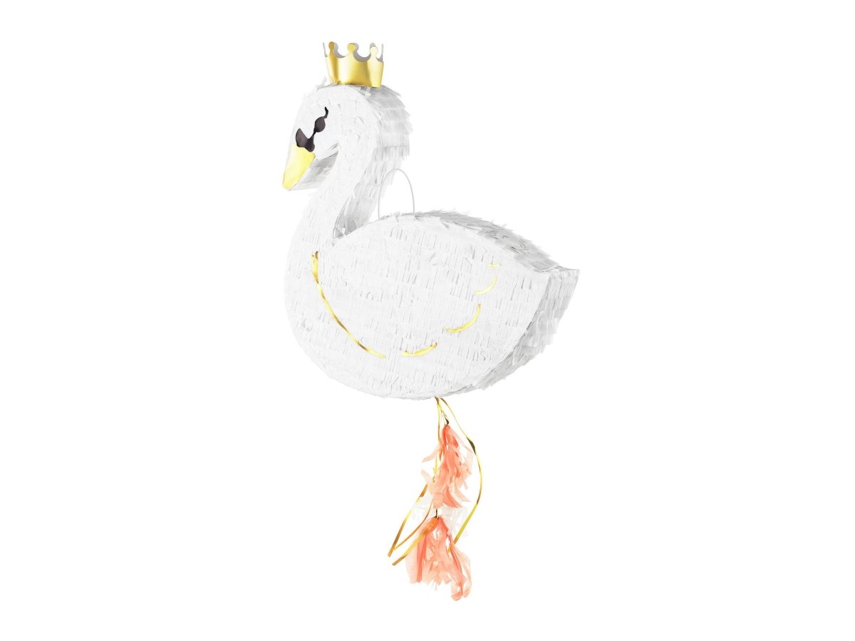 Contenu : Pinata en forme de cygne de couleur blanche, à remplir approximativement avec des friandises, taille. 43,5 x 49,5 x 9 cm.