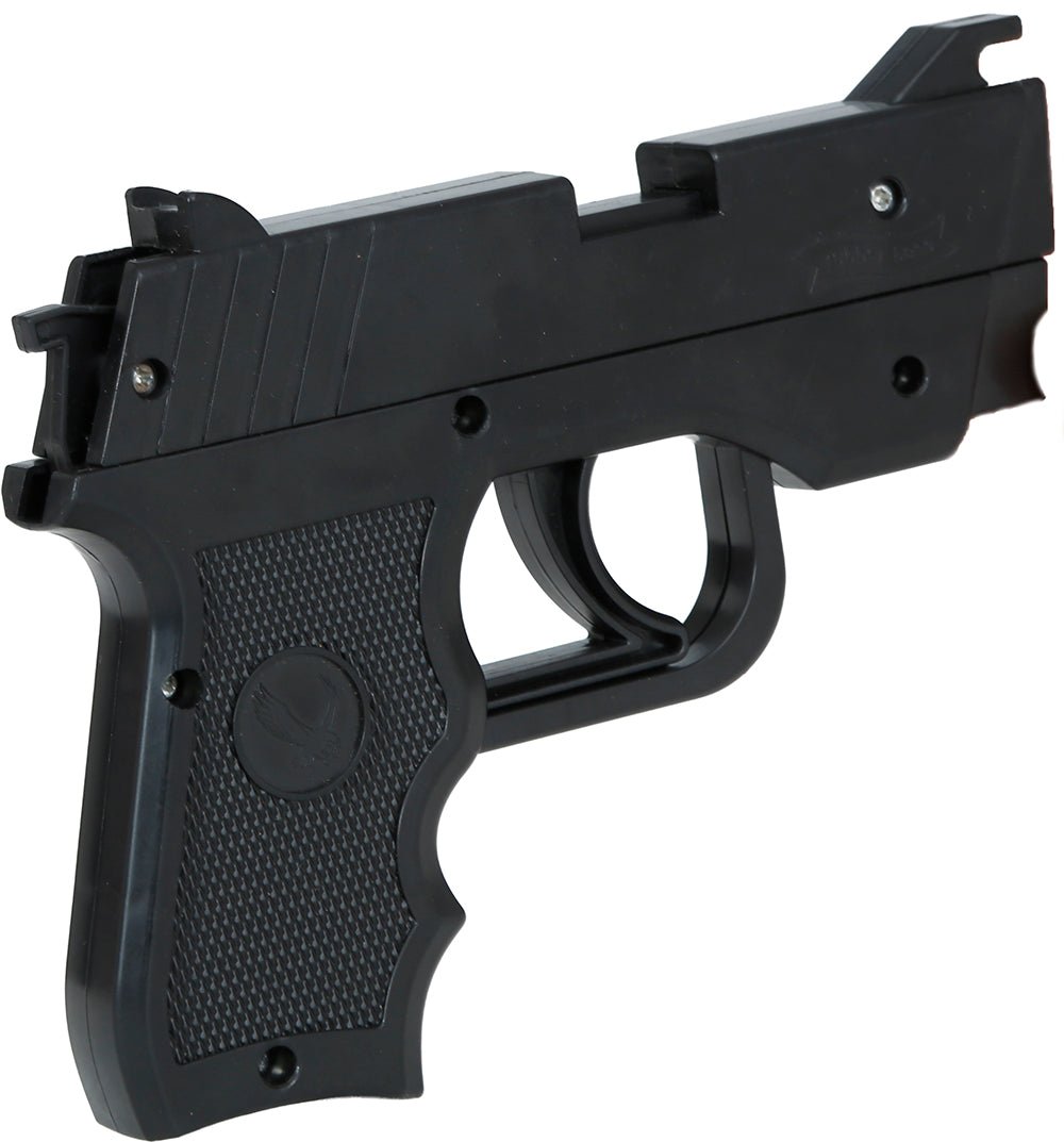 Apporte de l'action et du plaisir aux jeux avec ce pistolet élastique noir de 17 cm. Parfait pour des défis passionnants, des duels amusants ou simplement pour s'amuser sans fin.