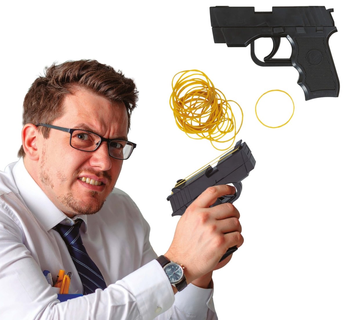 Laisse le plaisir commencer avec ce pistolet à élastique compact et cool!