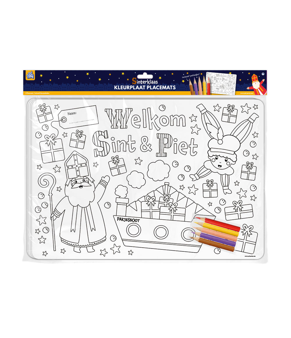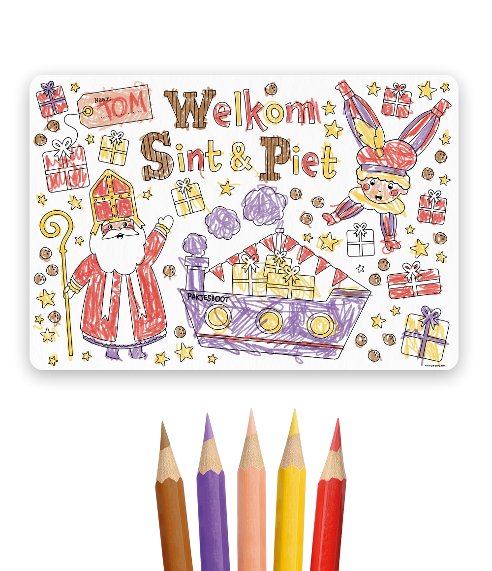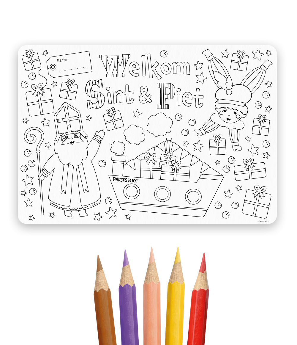 Ajoute de la couleur et de la convivialité à la fête de Sinterklaas avec ces napperons colorables. Les sets de table sont imprimés avec de joyeuses illustrations de Sinterklaas que les enfants (et les adultes !) peuvent colorier eux-mêmes. Ainsi, la table ne sera pas seulement festivement dressée, mais aussi un espace de jeu créatif.