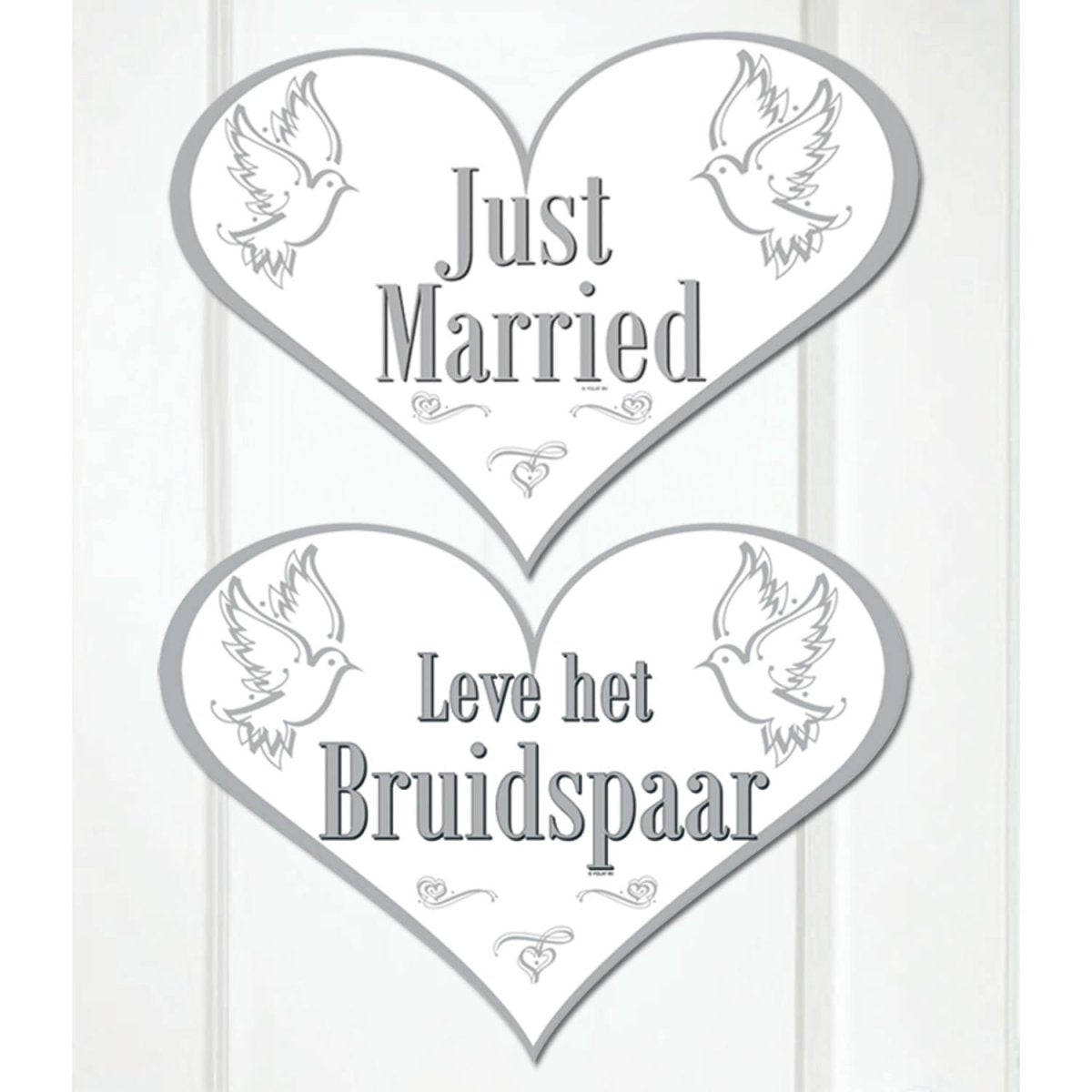 Panneau de porte Just Married. Contenu : 1 plaque de porte. À utiliser par exemple lors des fêtes/occasions suivantes : Mariage. Dimensions de cet article : 47 x 35 cm. L'article est fabriqué en carton.