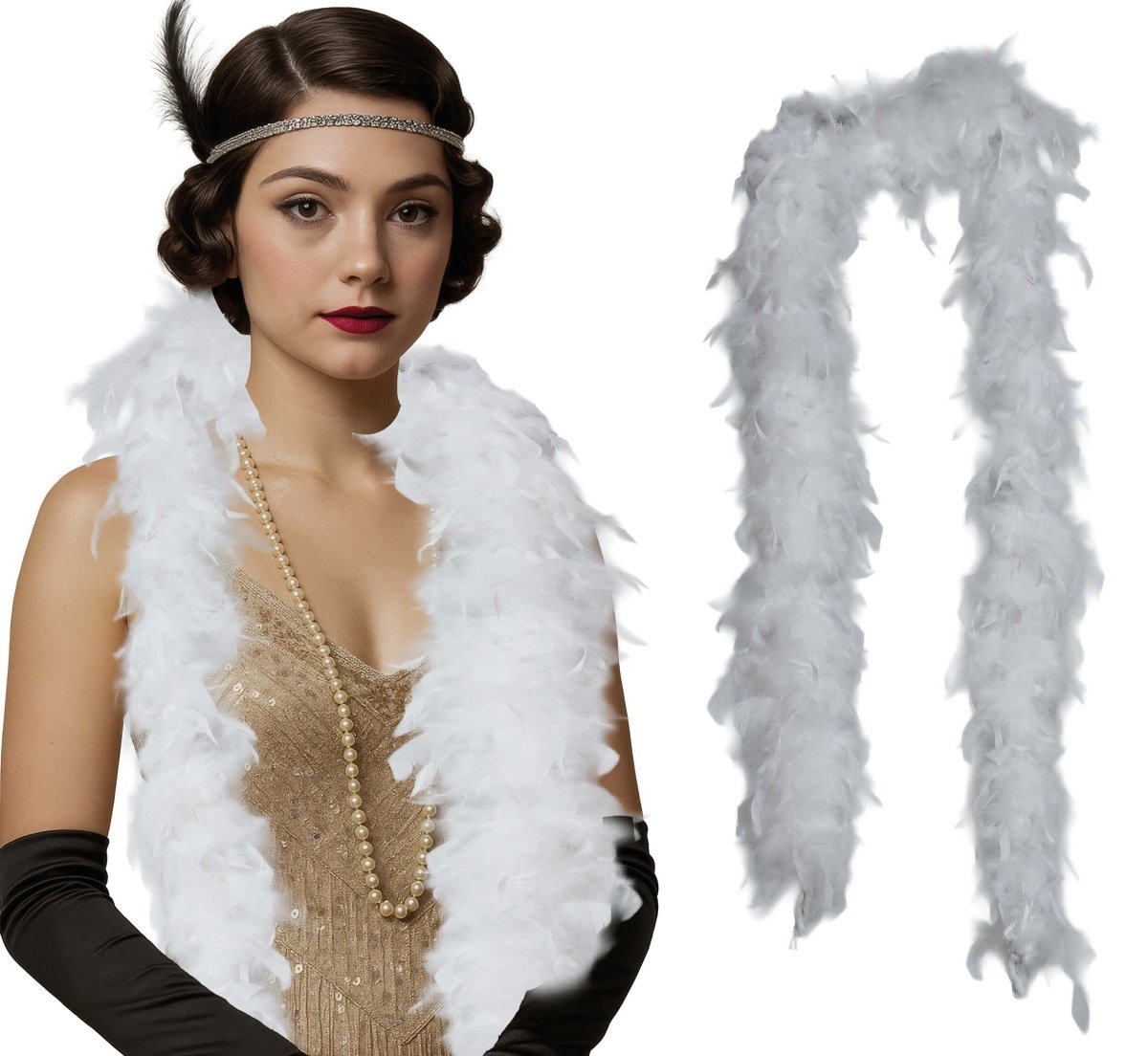 Ajoute une touche élégante à ta tenue de fête avec ce boa en plumes blanches. Léger, doux et élégant - idéal pour les fêtes à thème, le carnaval, la scène ou les soirées costumées.