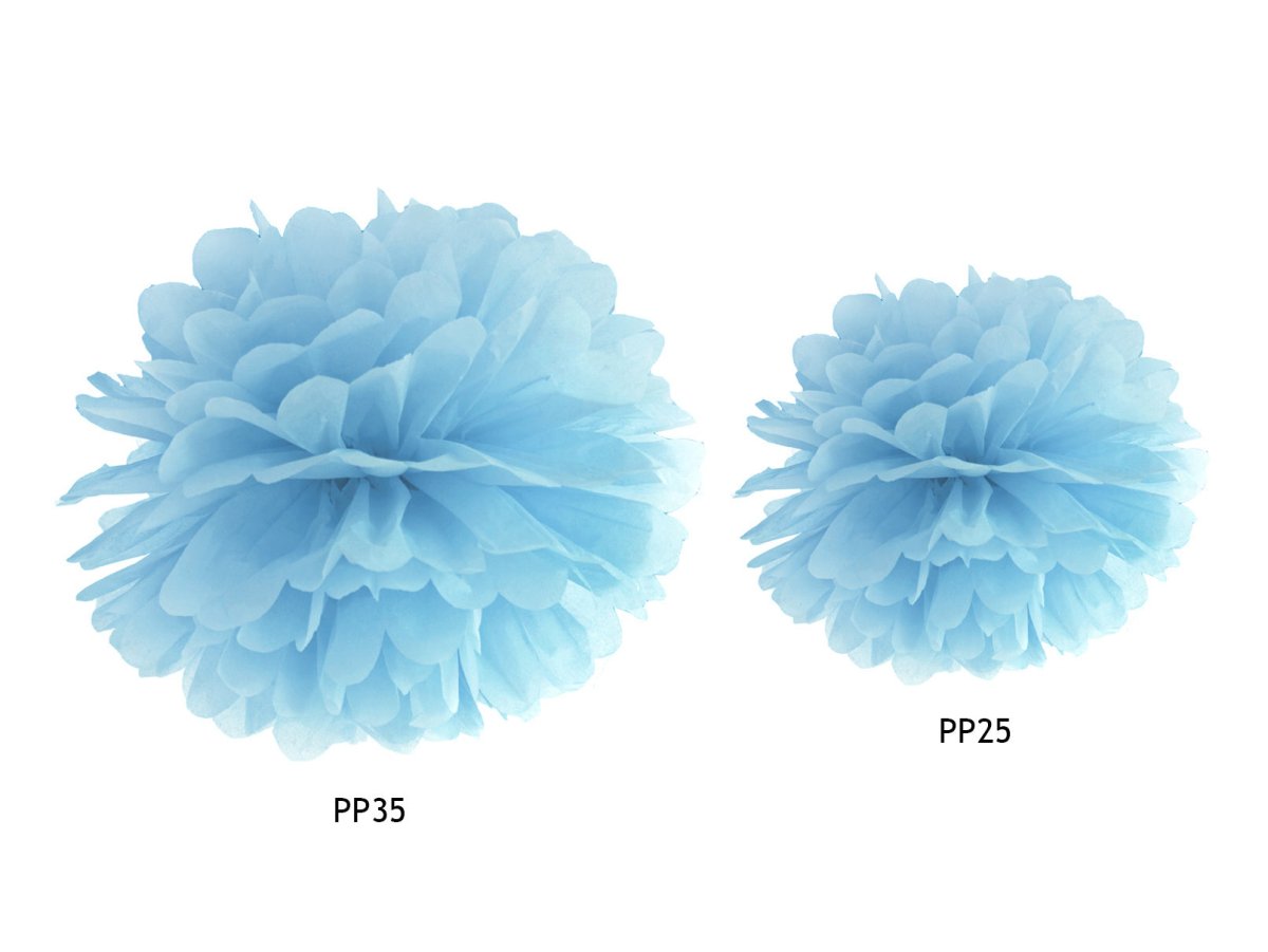 Contenu : Pompom en papier de soie, bleu clair brumeux, taille 35 centimètres.