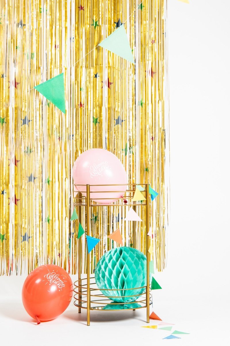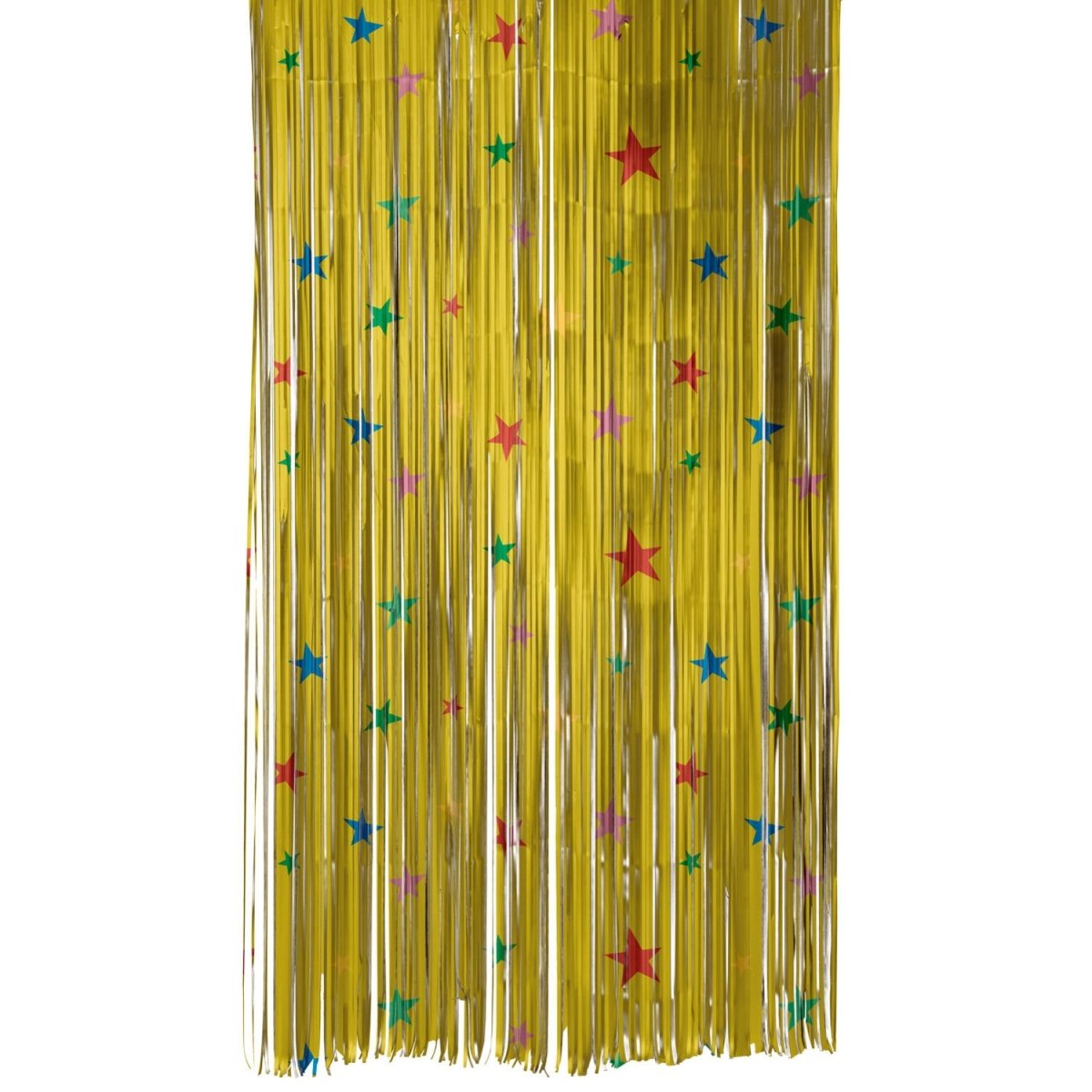 Rideau de porte Foil Retro Stars - 2x1 m. Contenu : 1 rideau de porte. Couleur : couleur or. À utiliser par exemple lors des fêtes/occasions suivantes : Anniversaire et Fête des enfants. L'article mesure 2x1 mètres. L'article est fabriqué en feuille d'aluminium.