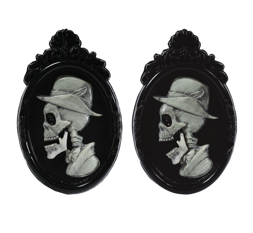 Donne à ton entrée d'Halloween un aspect terrifiant avec cette plaque de porte Portrait de crâne de 45 cm. Le bas-relief en forme de buste avec crâne, doté de lumières LED dans les yeux, d'une mâchoire mobile et de dents qui claquent, crée instantanément une entrée effrayante et accrocheuse.